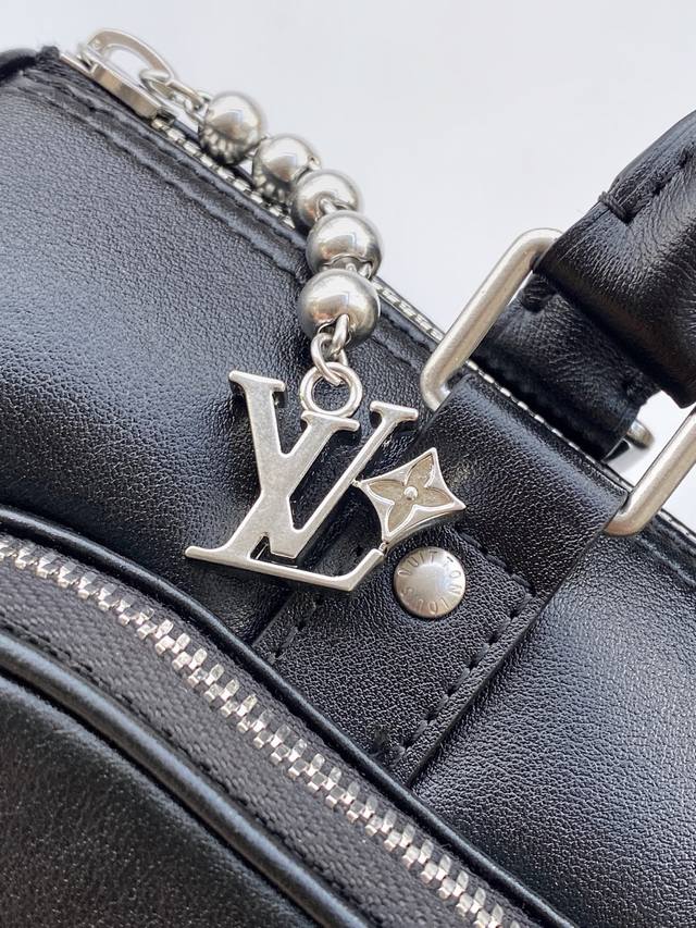 M13988 This Keepal Cargo Bandouliere 25 handbag is crafted from glossy calfskin leather, conveying the Dandy aesthetic of pharrell Williams through its elegant urban design. Louis Vuitton Paris appliqu
