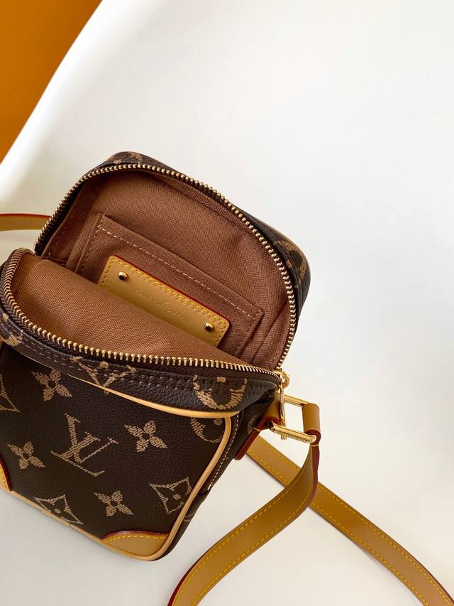 M14024 Full Leather M14014 Monogram Top-Tier Original Dynamic Dimensioning. In its latest collection, pharrell Williams has reimagined the 80s Amazone crossbody bag, giving it a luxurious upgrade with exquisite details. Crafted from supple cowhide leather and covered with the Monogram print, the leather's texture evokes vintage Monogram canvas. The bag is adorned with a pearl zipper and features a detachable Louis Vuitton metal tag, reminiscent of the nameplates on the brand's vintage trunks. 13.5 x 20.0 x 8.0 cm (Length x Height x Width).