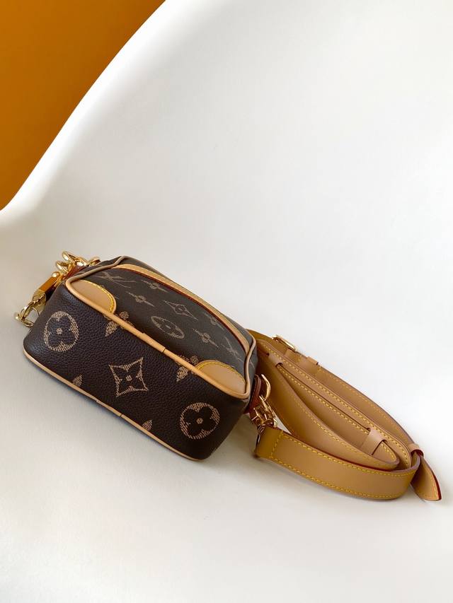 M14106 Full Leather M14013 Monogram Top-Tier Original Single-Item Dynamic Code Danube Crossbody Bag. Constructed from cowhide leather, reminiscent of Louis Vuitton styles from the 1980s, the slightly faded Monogram print gives it the look of Monogram canvas. In addition to the zippered main compartment, there is a practical flap pocket on the front. A detachable metal tag is printed with the Louis Vuitton name. 16.0 X 21.0 X 6.0 cm (Length X Height X Width)