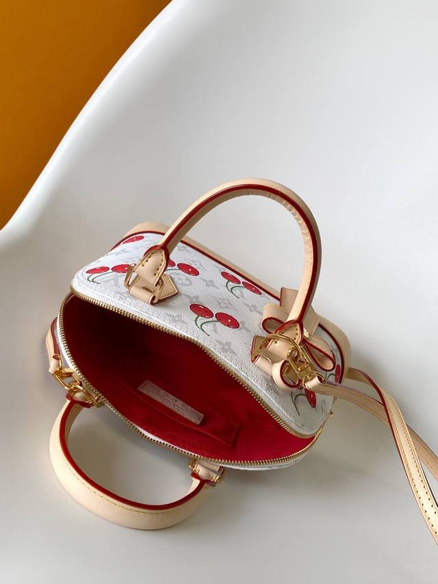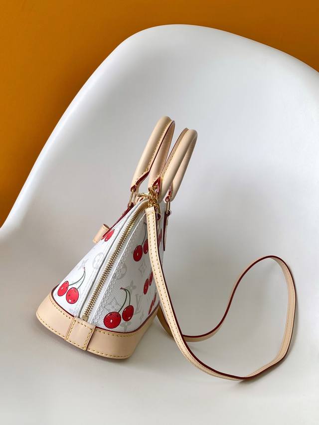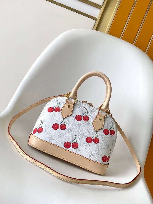 M14234 53152 Cherry Top-Tier Original Single Dynamic 163 DDD This stylish and outstanding Alma Bb handbag originates from the playful replica of the Louis Vuitton X Murakami series. It's crafted from the brand's classic Monogram coated canvas, featuring an Art Deco silhouette, and adorned with vibrant cherry patterns by Japanese artist Takashi Murakami. The handbag uses signature natural leather to add eye-catching style to the elegant Toron top handle, bottom, and playful bow-shaped key holder. DDD 23.5 X 17.5 X 11.5 cm DDD Length X Height X Width DDD