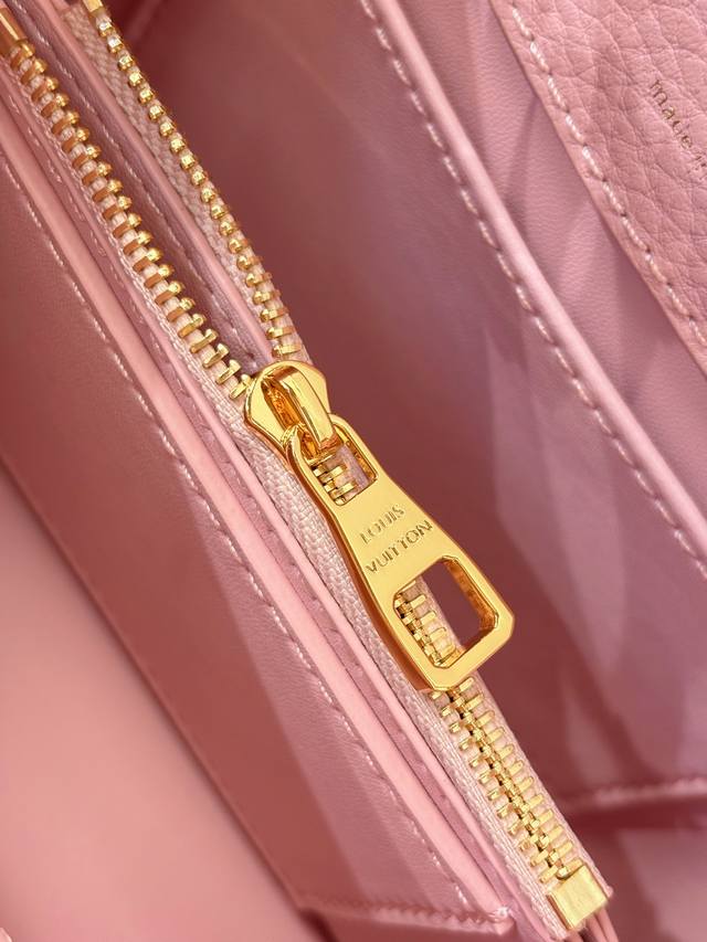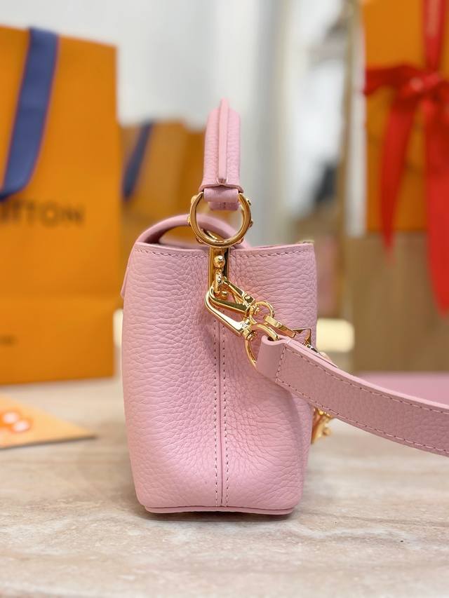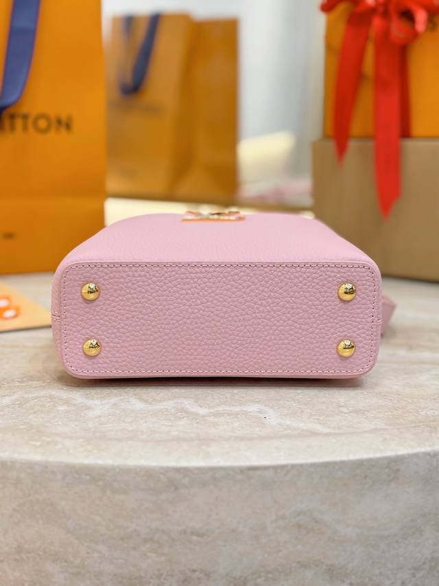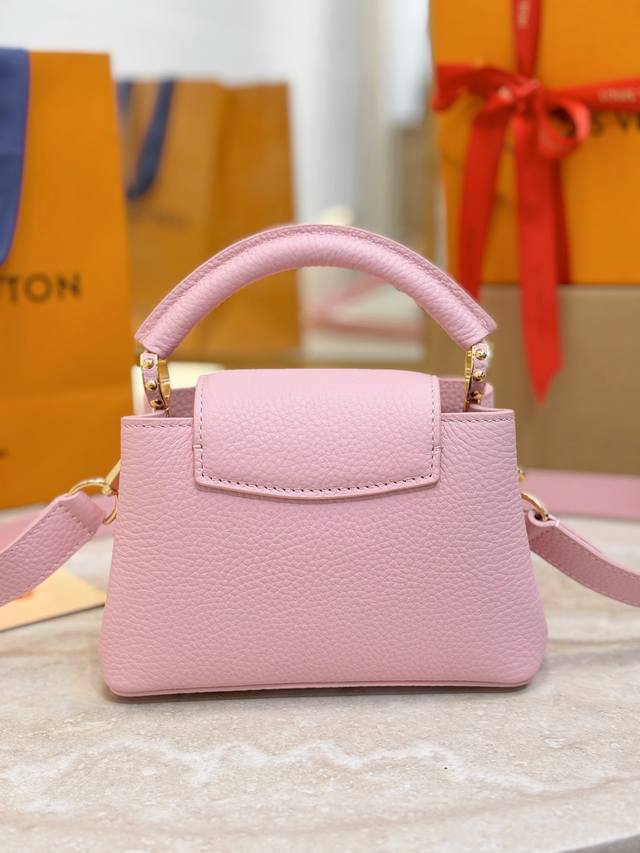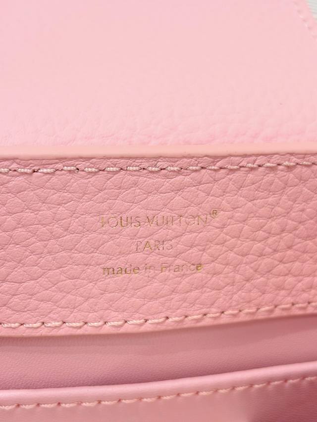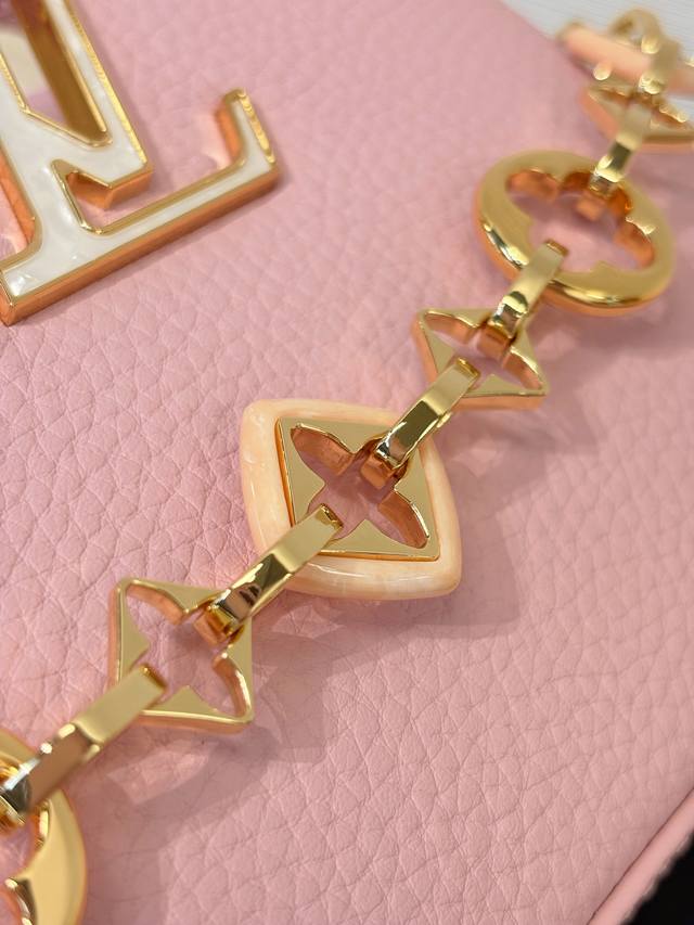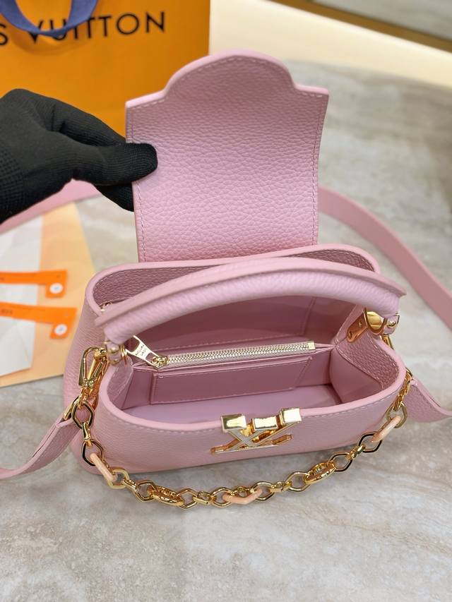 . The Capucines collection, named after the Parisian street where Louis Vuitton first opened its store in 1854, joins the Harmony collection in a miniature design. Taurillon leather creates a classic silhouette, while a decorative chain lends a Monogram floral jewel-like feel. Ample storage allows for a compact wallet, keys, lipstick, and other daily essentials. Size: 21 x 14 x 8 cm