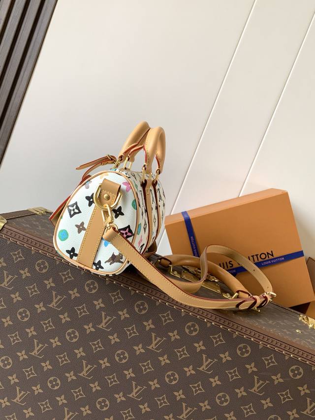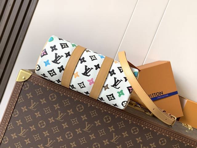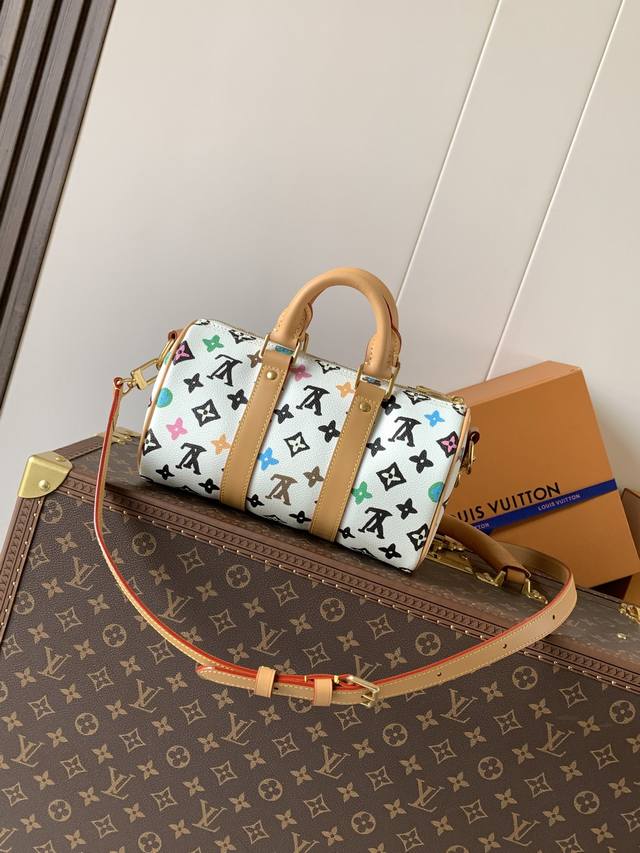 M24849 White Color Top-Tier Original Single Item with Variable Code Chip 163C Pillow Bag. This Keepall 25 handbag is crafted from Monogram Eclipse Reverse canvas, showcasing an elegant reinterpretation of Louis Vuitton's classic pattern. Reinforced straps and a leather nameplate continue the iconic elements of the Keepall series, while a zipper closure ensures the safe carrying of personal belongings. Dimensions: 25.0 x 15.0 x 11.0 cm (Length x Height x Width).