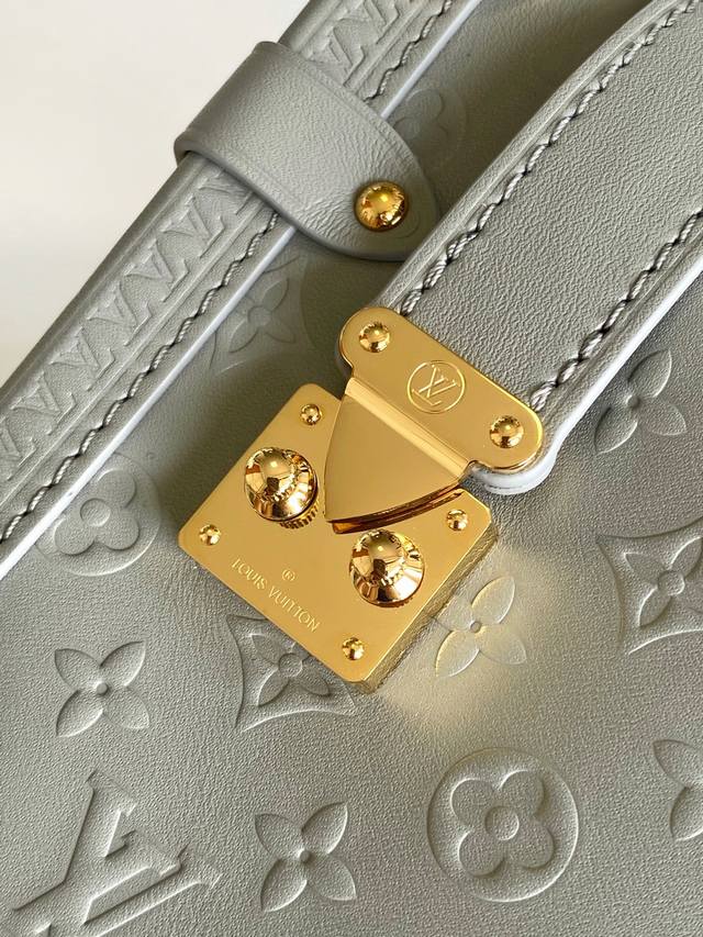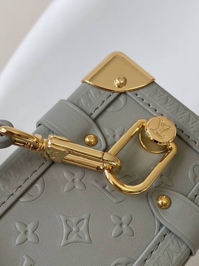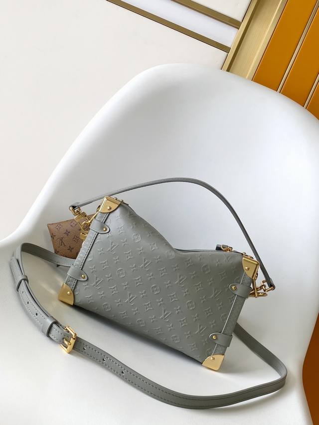 M25602 Top-tier original single item, dynamic 163 DDD This medium-sized Side Trunk handbag features a subtle embossed Minigram Bold logo on calfskin leather, while sophisticated metal hardware speaks to Louis Vuitton's trunk-making heritage. The contrasting Monogram decoration replicates the invitation to Nicolas Ghesqui
