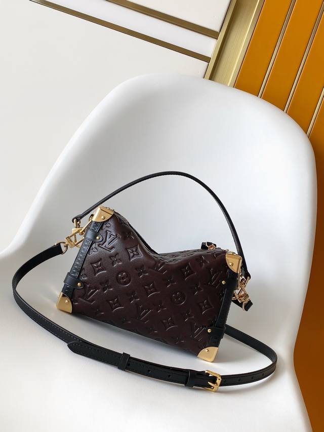 M26304 Top-tier original single item, dynamic 163. Continuing Louis Vuitton's trunk-making tradition, this Side Trunk medium handbag is crafted from iconic Monogram Saga leather, its vintage feel inspired by the classic trench coat worn by supermodel Freja Beha Erichsen in Nicolas Ghesqui