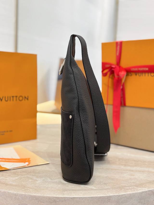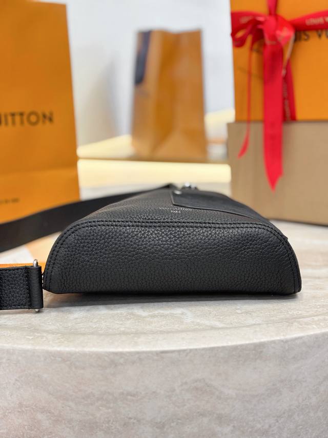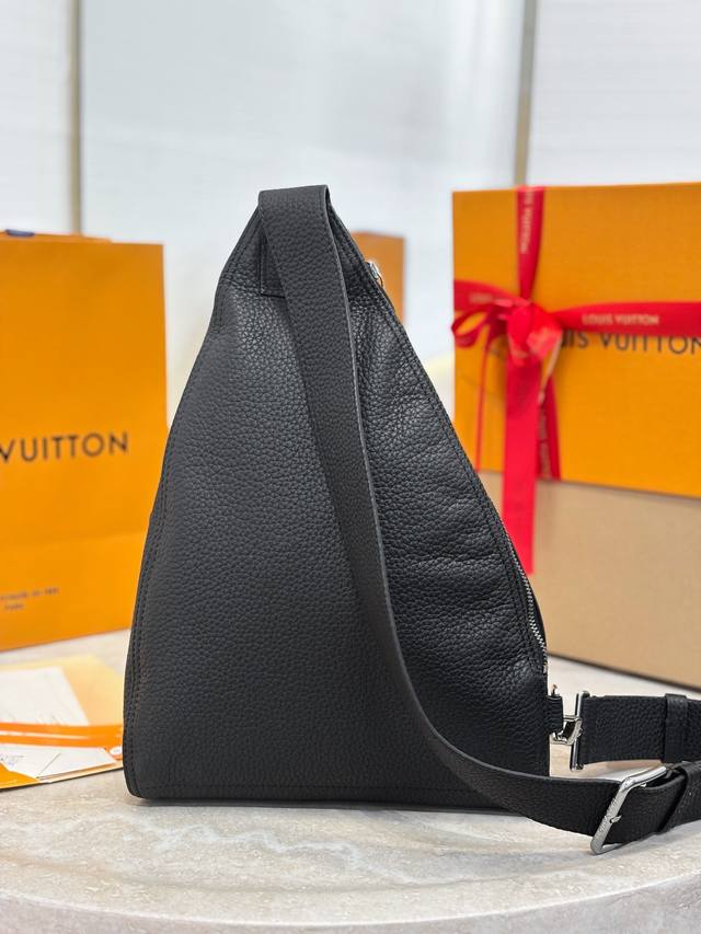 M27060 Black Ddd Lv Touch Leather Delta Shoulder Bag features a unique silhouette, exuding elegant sophistication. The velvet leather exterior on the front is adorned with elegant V-shaped double-sided decorative stitching. The main interior has a zipper and can hold a smartphone, wallet, keys, and other essentials. The adjustable strap allows for comfortable wear across the chest or over the shoulder. Size: 30 x 35.5 x 7cm DDD