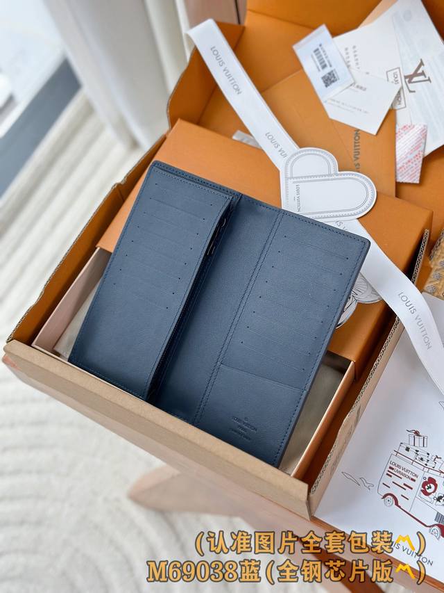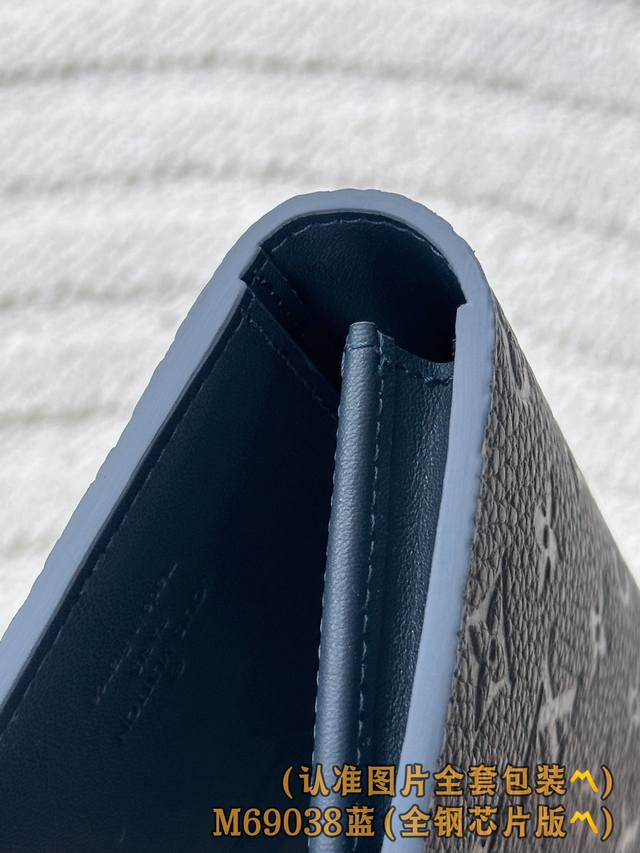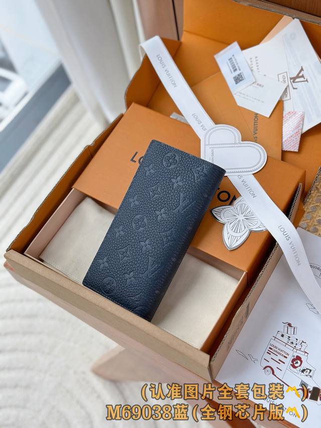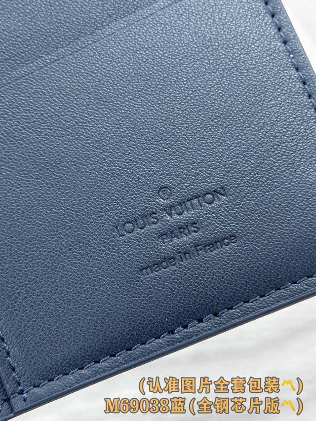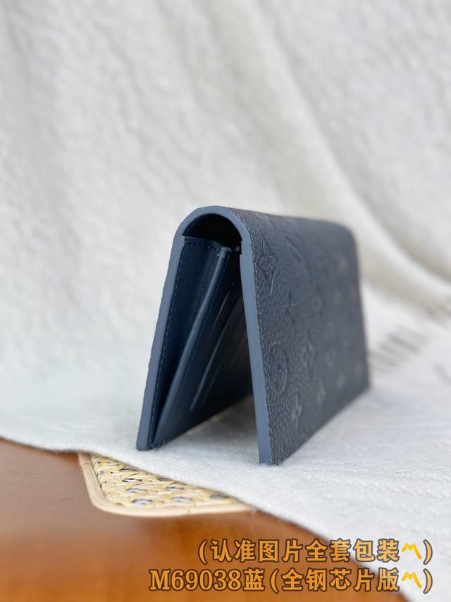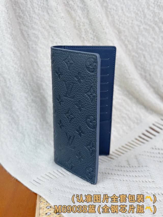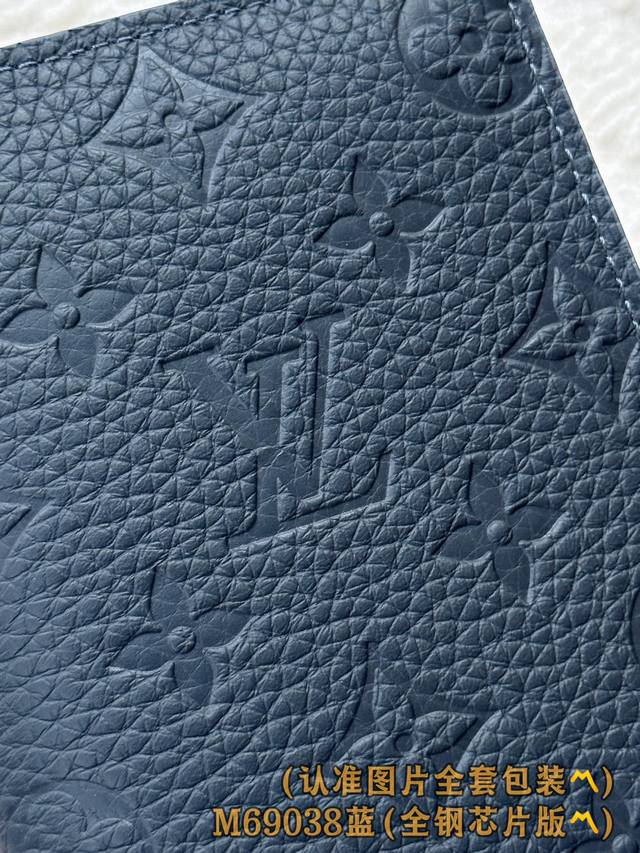 M69038 Embossed Blue Grade A All-Steel Personalized Custom Edition! Featuring a microchip and an elegant design, the Louis Vuitton Brazza wallet is crafted from blue Monogram Shadow calfskin, an ultra-soft leather embossed with the Monogram pattern. This classic wallet features multiple credit card compartments and dividers, including a zippered coin compartment. 10 x 19 x 2 cm. (Length x Height x Width)