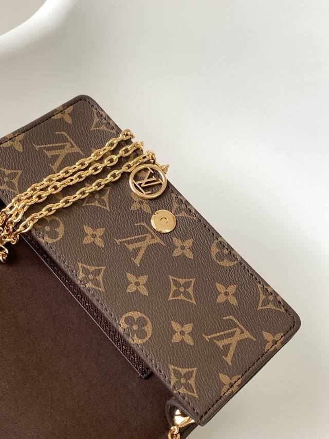 M82509 Top-tier replica Lily Wallet On Chain handbag. The square shape is crafted from Monogram canvas, adorned with studs and a Louis Vuitton logo plaque on the flap. Ample space easily holds day and night essentials, while the LV Circle logo and detachable , adjustable chain allow for multiple carrying options. 20.7 x 10.2 x 3.5 cm (Length x Height x Width).
