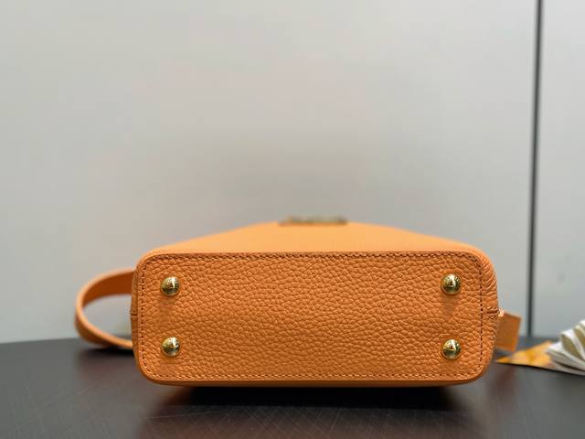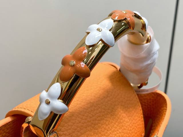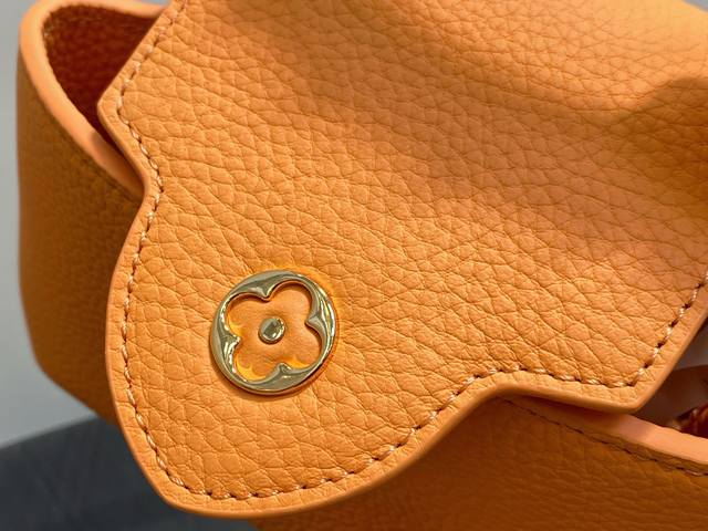 Original boutique M14976 Tauriel Four-Leaf Clover Full Leather Cap, Na Ying Style. This Capucines mini handbag features delicate Monogram flowers on the handles, and the LV logo is delicately rendered in three dimensions, adding a touch of brilliance to the feminine design. The full-grain Taurillon leather creates a compact shape that can accommodate a smartphone, a compact wallet, and other small essentials. Dimensions: 21