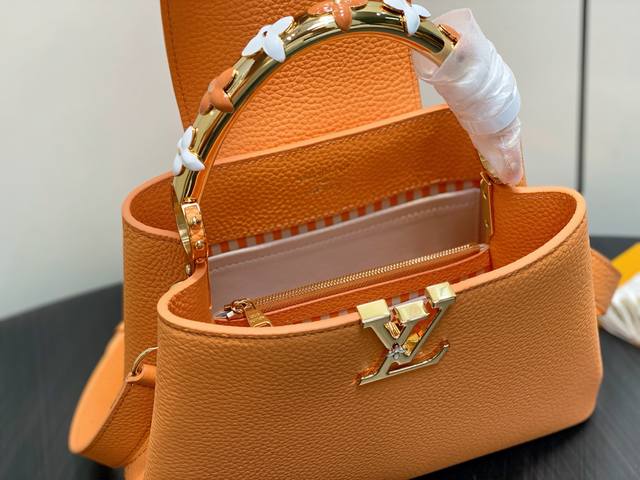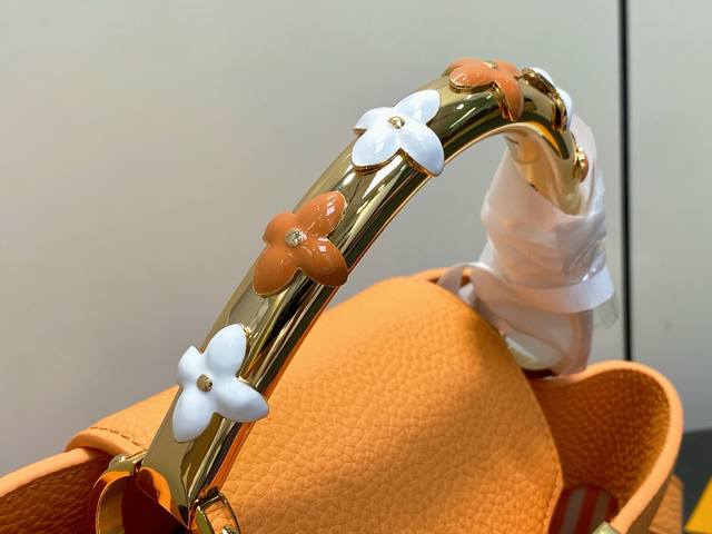 Original boutique M14976 Tauriel Four-Leaf Clover Full Leather Cap Na Ying Style. This Capucines Bb handbag features delicate Monogram flowers on the handles, and the Lv logo is delicately rendered in three dimensions, adding a touch of brilliance to the feminine design. The full-grain Taurillon leather creates a compact shape that can accommodate a smartphone, a compact wallet, and other small essentials. Dimensions: 27