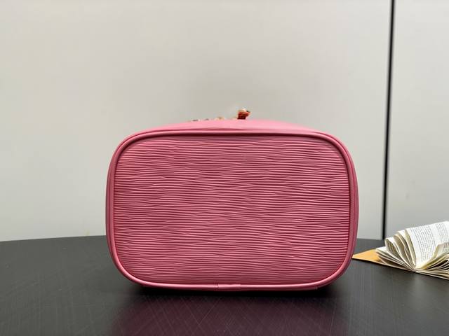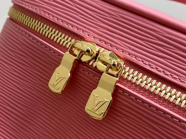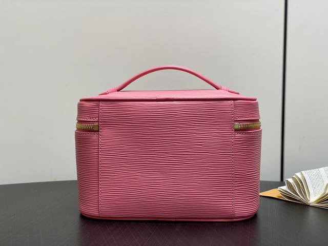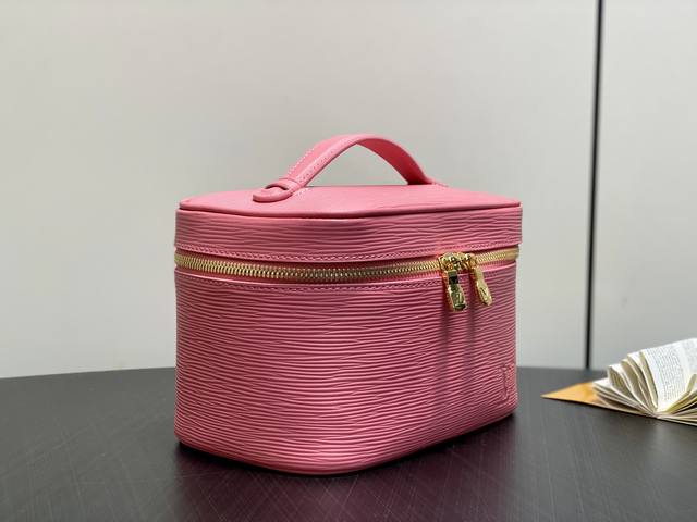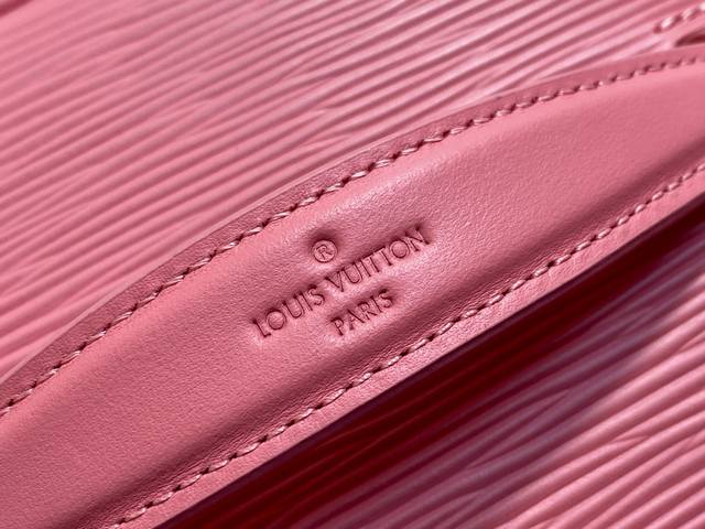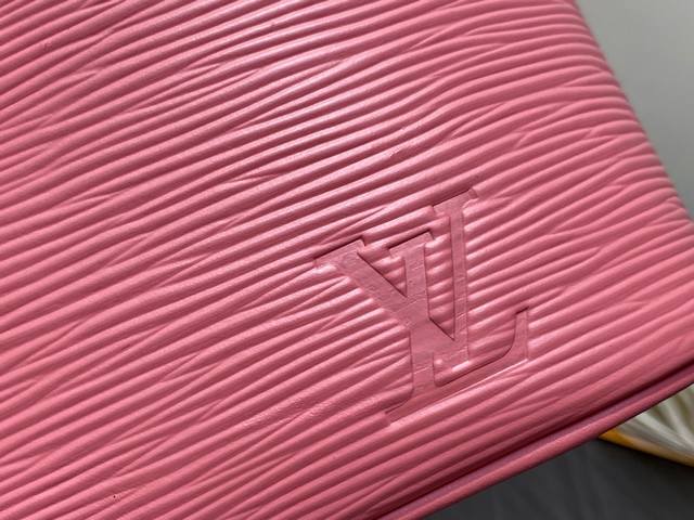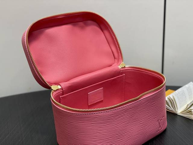 Original boutique M15191 Pink Water Ripple Cosmetic Bag, a new season's Nice Mini Cosmetic Bag. Inspired by the lipsticks in the Louis Vuitton Beauty collection, this Nice Mini Cosmetic Bag features Epi grain leather and a washable fabric lining in striking shades, showcasing the brand's elegant style. A zippered pocket under the flap keeps essentials secure, making this compact bag perfect for home or travel. 13.5 x 12 x 20 cm.