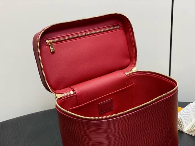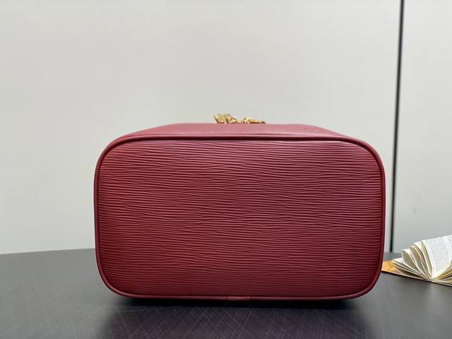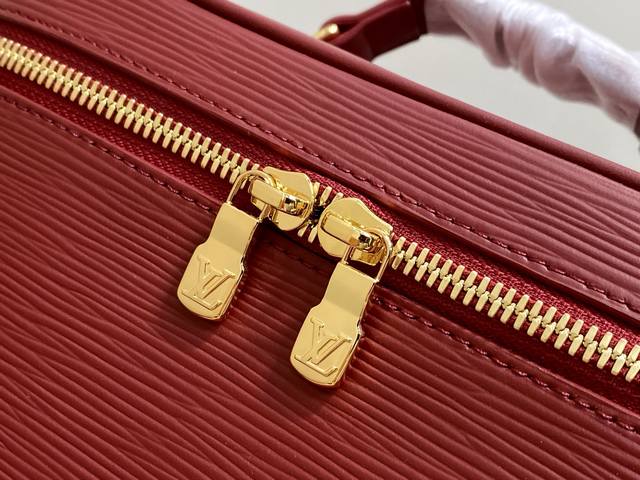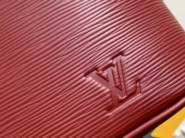 Original boutique M25856 Burgundy Water Ripple Cosmetic Bag, new for the season. Nice Bb Cosmetic Bag. This Nice mini cosmetic bag draws inspiration from the lipstick colors of the Louis Vuitton Beauty collection. Crafted from Epi grain leather, it features a soft silhouette and flat leather handles for extra storage space. The double-zippered top flap opens with an LV-inscribed zipper pull to reveal a washable fabric lining. Perfectly sized for travel. 18 x 14.5 x 24 cm (
