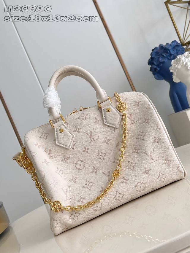 / Original Leather Exclusive Real Shot M26690 White Version Speedy Bandouli