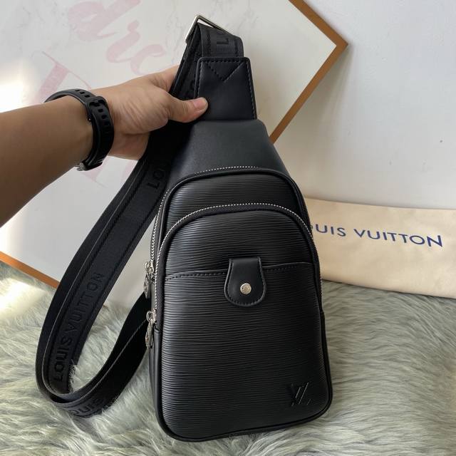 Original Louis Vuitton men's chest bag with top-grain calfskin leather - latest style. Original quality, same as official website, superb feel, original hardware, unique design style, perfect details, exquisite workmanship, elegant and sophisticated, high-end and classy, high quality. Model: 2081, Size: 29