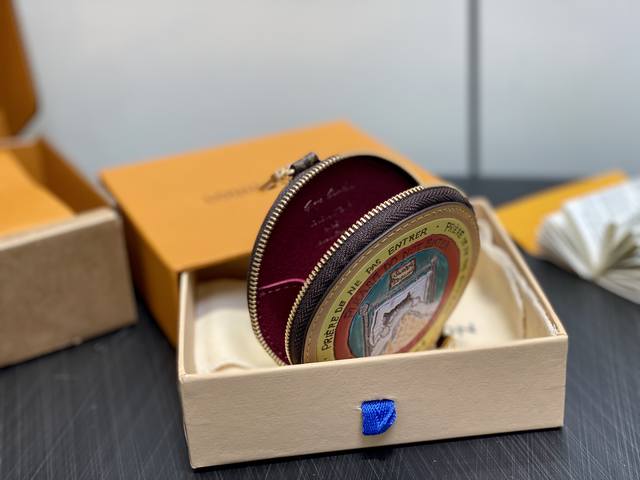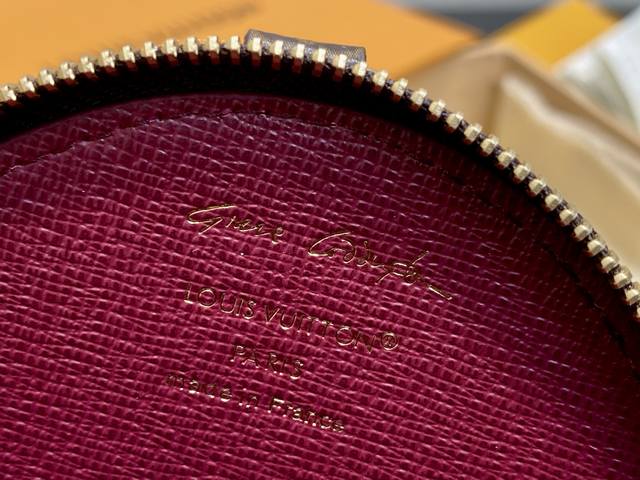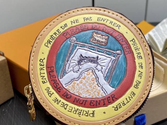 Original Quality M15140 Monogram Cat Round Coin Purse/Slippy Coin Purse. This coin purse is crafted from cowhide leather and Monogram canvas, a collaboration between Louis Vuitton and renowned fashion artist Grace Coddington. The round body is adorned with Coddington's hand-painted cat motif, playfully complementing the "please Do Not Enter" message. A metal zipper and hook closure make it easy to hang keys or other accessories. Dimensions: 9.5 x 9.5 x 1.5 cm.