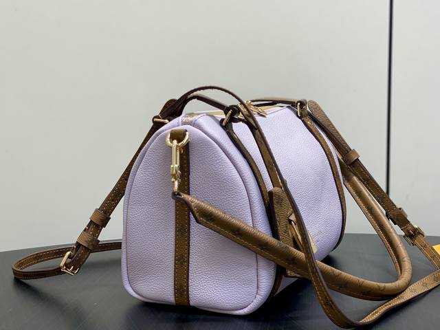Original Quality M27275 Light Purple Full Leather Speedy Pillow Bag Express Small Handbag M26039 Black M26360 Smoky Green M26905 Ivory White M27275 Taro Purple This Express Small handbag is a true urban gem, inspired by the brand's classic Keepall Sj travel bag. Crafted from fine cowhide leather, it features Monogram pattern trim and lining, along with metal hardware, the iconic key pouch, and padlock, embodying the essence of Louis Vuitton's travel tradition. Its compact size is perfect for everyday essentials, and multiple carrying options allow for versatile portability, fitting the modern urban lifestyle. Dimensions: 17 x 13.5 x 26 cm (H x W x Length)