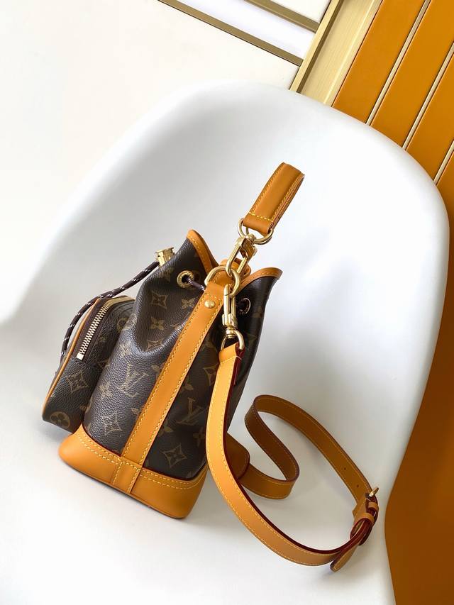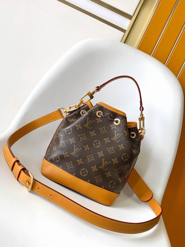 pM14017 Monogram Canvas Yellow Leather 163C Chip Steel Hardware Matching Vintage Bucket Bag No
