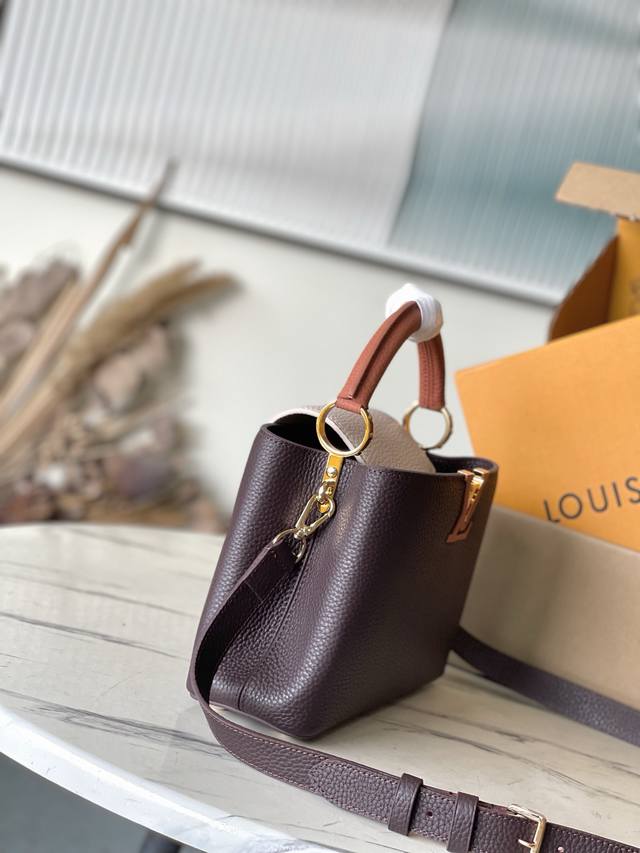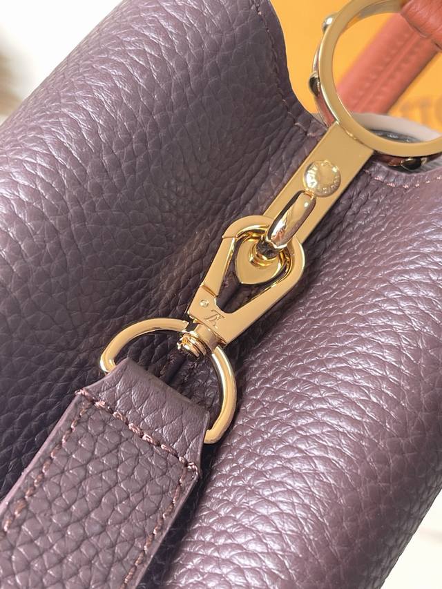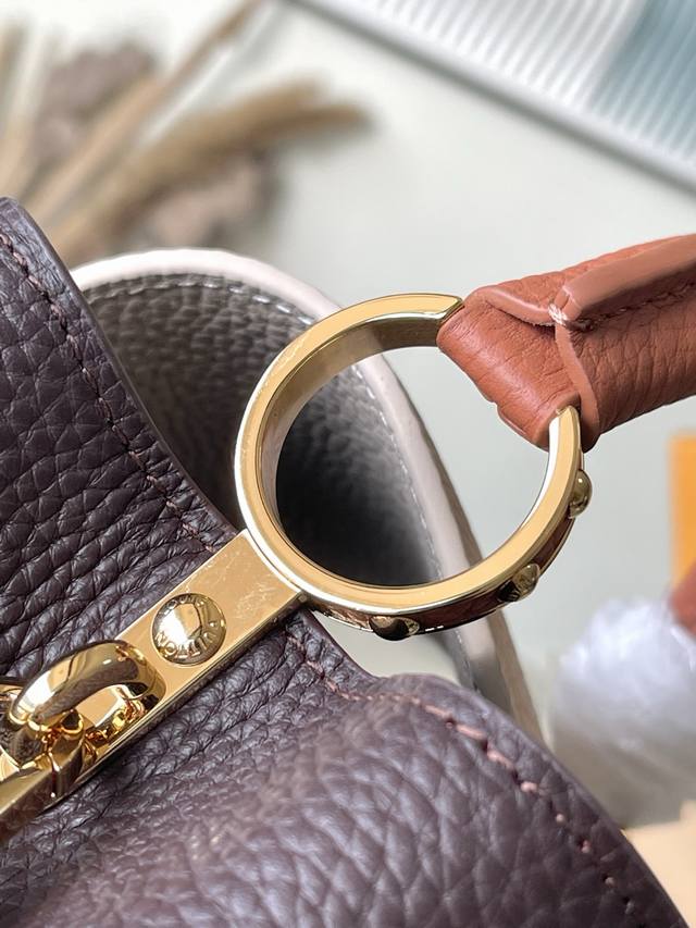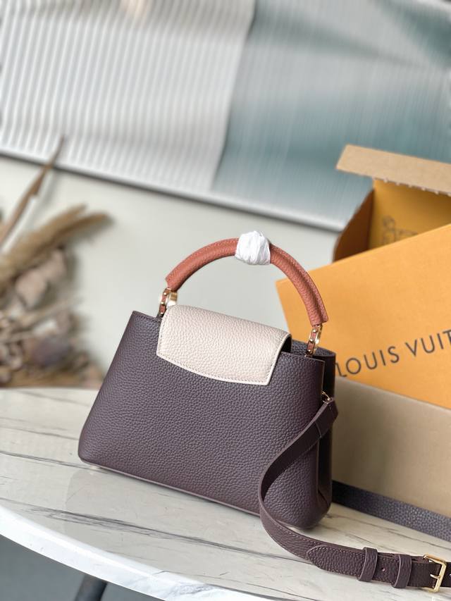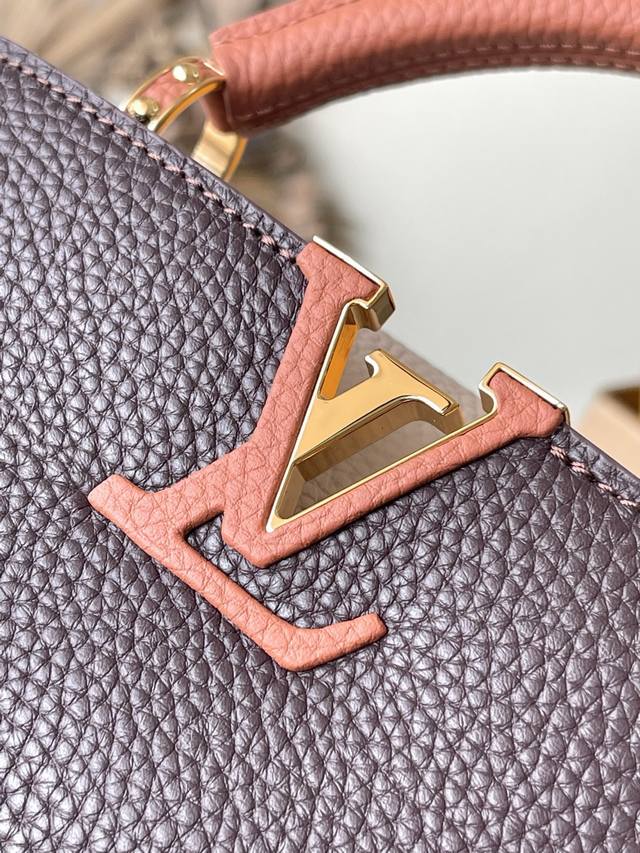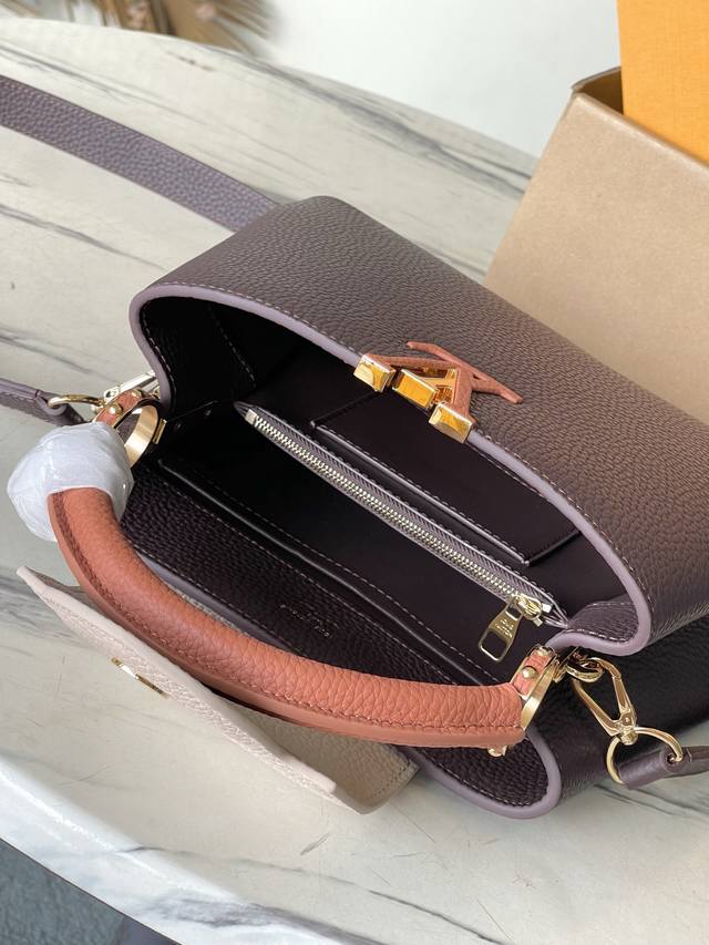 Premium Genuine Leather M12952 Small This Capucines Small handbag is crafted from luxurious Taurllon cowhide in a new seasonal shade, accented by dazzling hardware and Lv lettering. The flap, which can be opened externally or internally, neatly arranges the interior. A zippered pocket securely stores valuables, and the removable and adjustable shoulder strap allows for flexible carrying.
