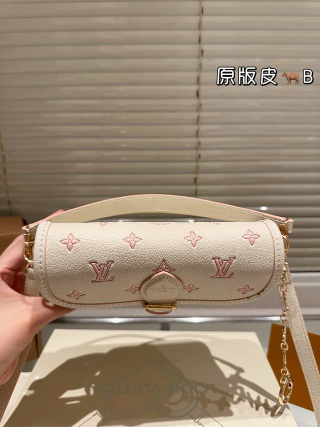 Lv Nano Diane leather underarm baguette bag full steel hardware full gift box packaging size 18 12cm