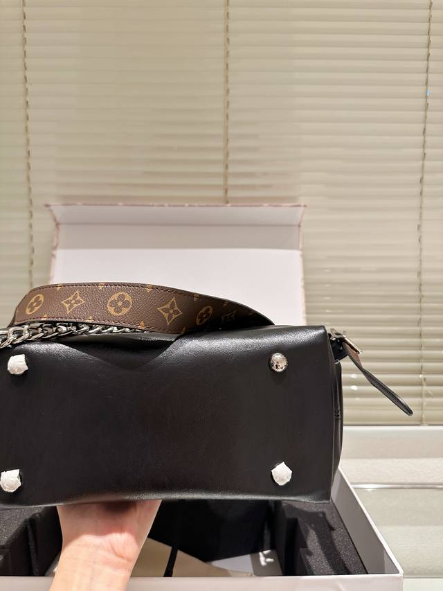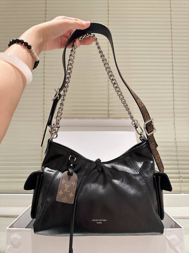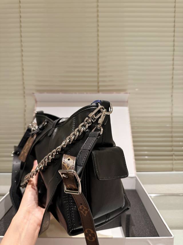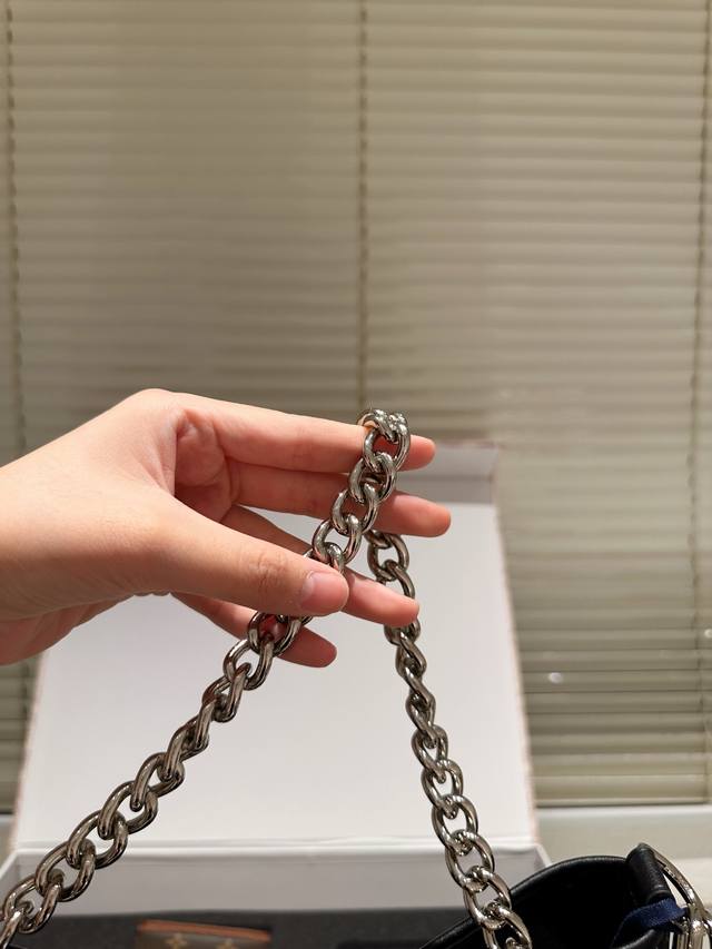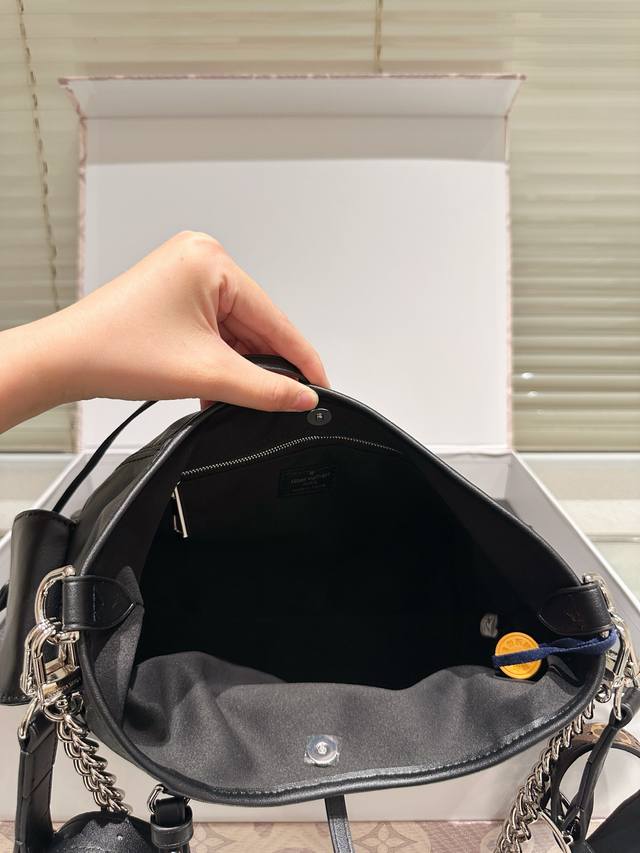 Soft lambskin leather with a stylish, slightly wrinkled effect, and a deep background with polished hardware and a lazy structure, making it a perfect choice for day and night. The detachable shoulder strap and chain strap allow for a variety of styling possibilities.
