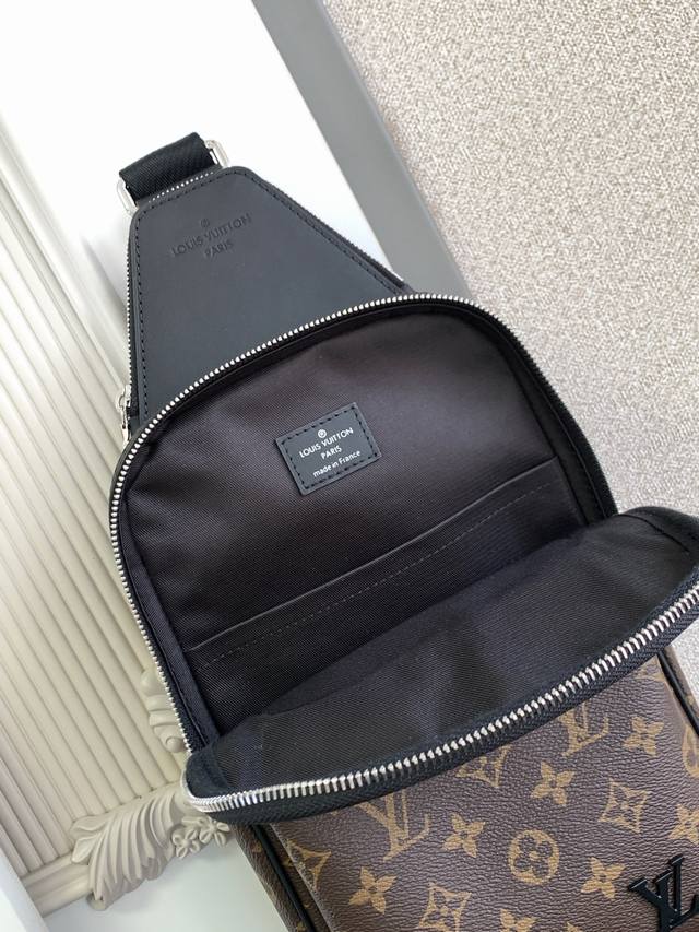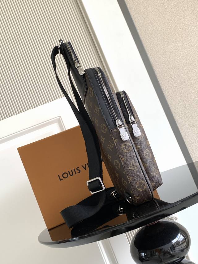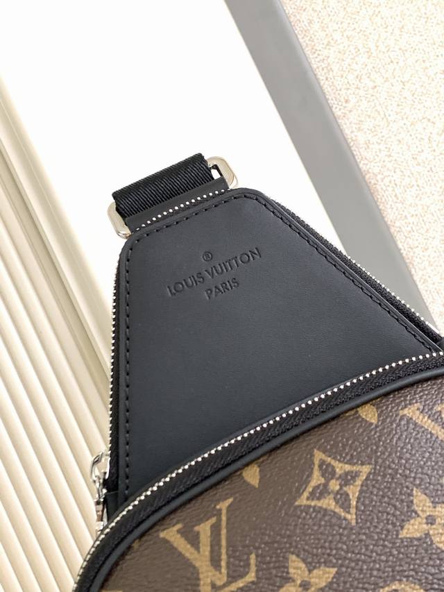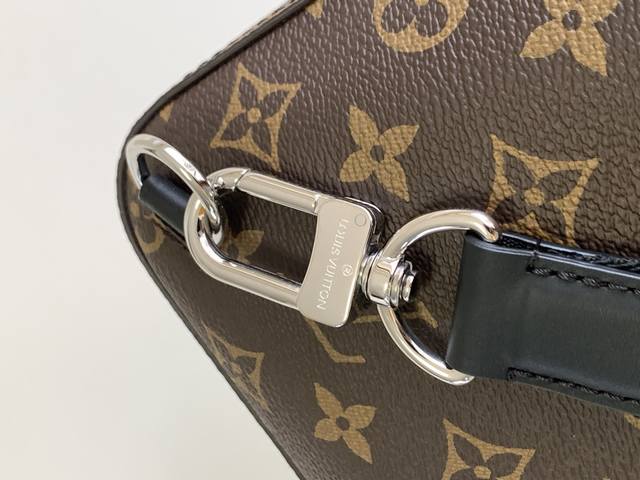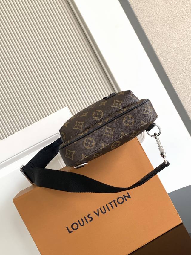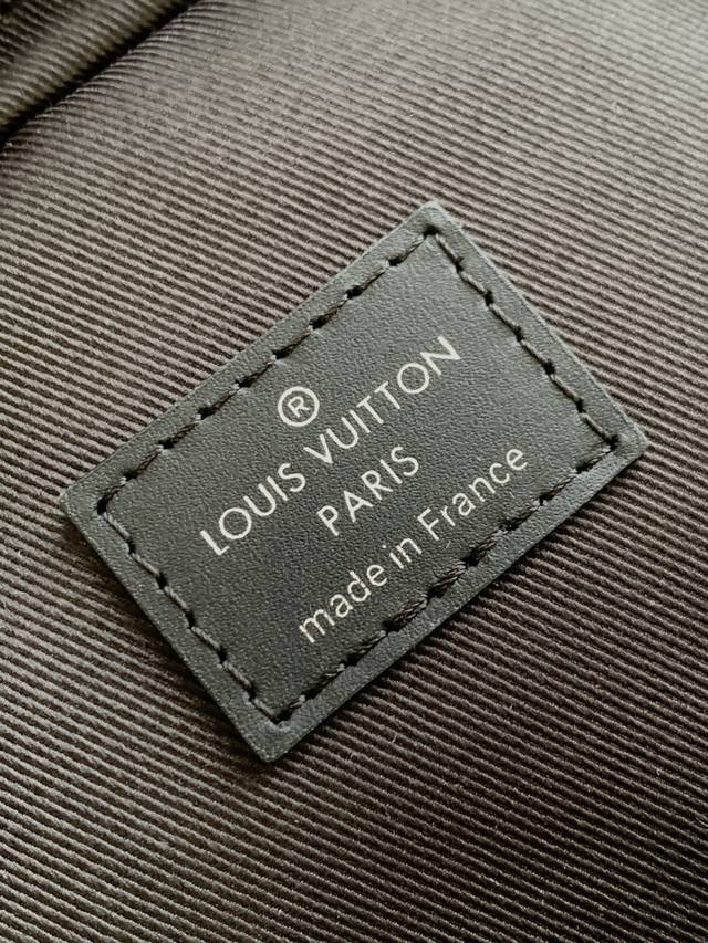 This shoulder bag is made of canvas, with a Louis Vuitton Paris logo leather patch on the front outer pocket. The adjustable nylon shoulder strap can be fixed on both sides with a ring, and the canvas shoulder strap and lining are infused with sustainable concepts.