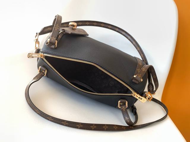 This small Express handbag is a true urban masterpiece, inspired by the brand's iconic Keepall travel bag. Crafted from fine cowhide leather, it's embellished with classic Monogram pattern trim and lining, and paired with hardware and the iconic key holder and padlock, showcasing the essence of Louis Vuitton's travel heritage. Its compact size perfectly accommodates everyday essentials and allows for a variety of carry styles, perfect for modern urban life.