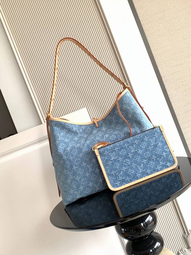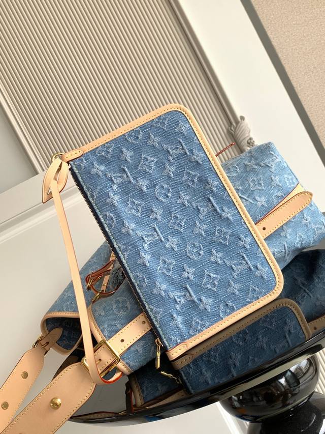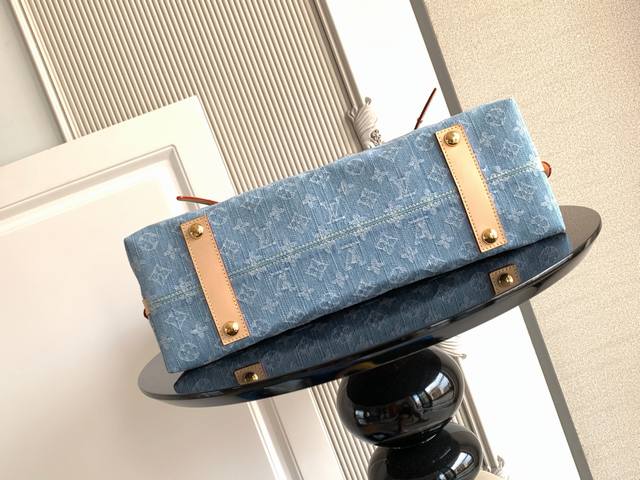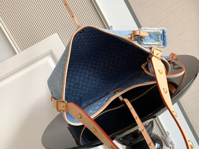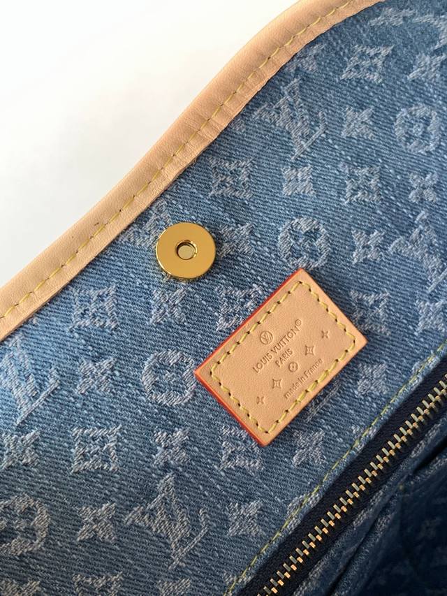 This medium handbag showcases the eponymous motif from 1997, woven into a cotton surface, then crafted using Louis Vuitton's expertly bleached finish for a washed effect. Contrast leather and a detachable name tag accentuate the sleek silhouette, while an interior zippered pocket securely stores valuables, making it a modern choice for urban travel.