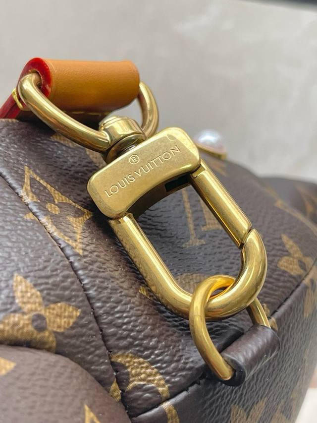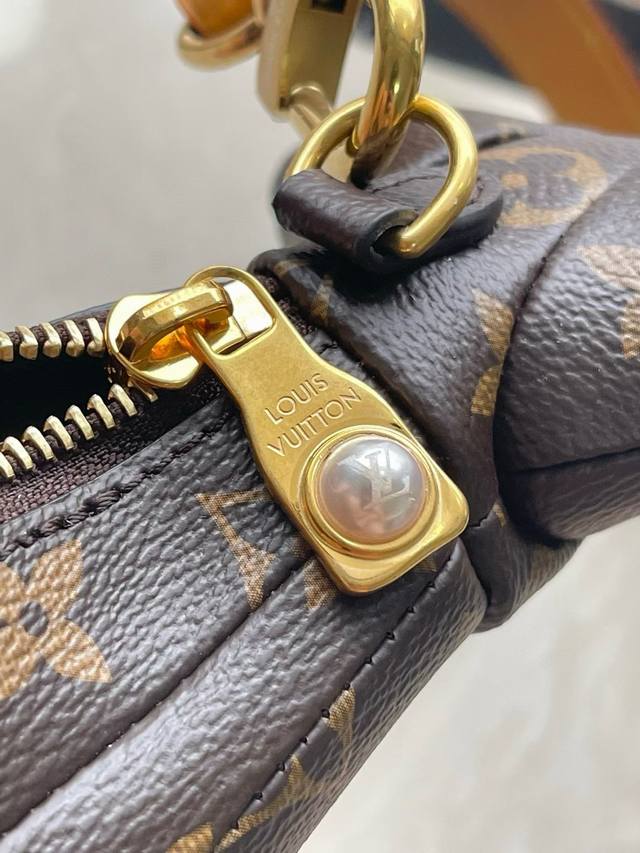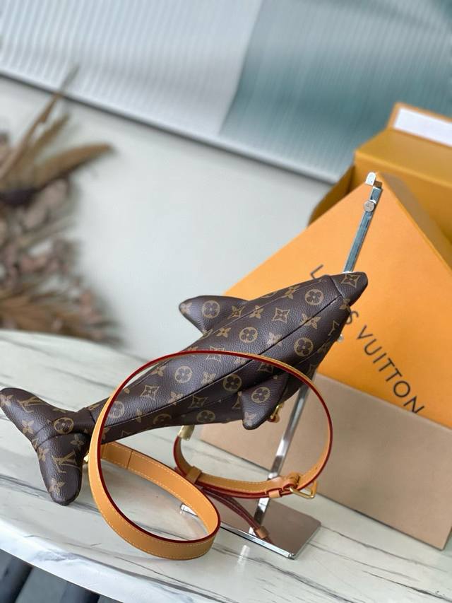 The duty-free M14963 Dolphin handbag, crafted from Monogram coated canvas and crafted with the brand's exquisite craftsmanship, is a collector's item. It can accommodate a smartphone and a cardholder. The distressed leather trim conveys a vintage feel, while the beaded eyes and LV metal beaded zipper pull bear witness to Pharrel Williams' unwavering dedication to meticulous detail. Dimensions: 38