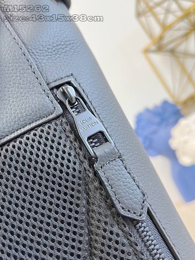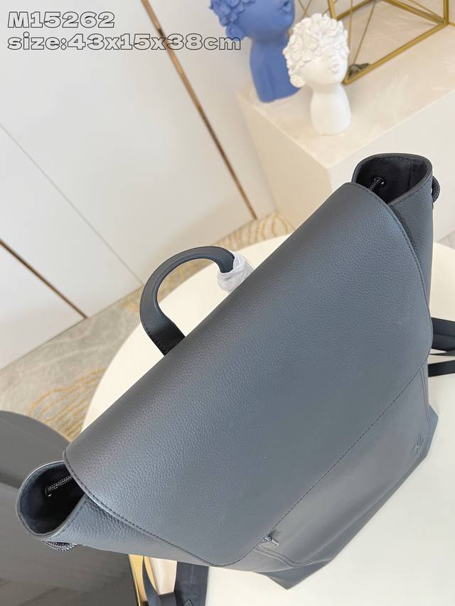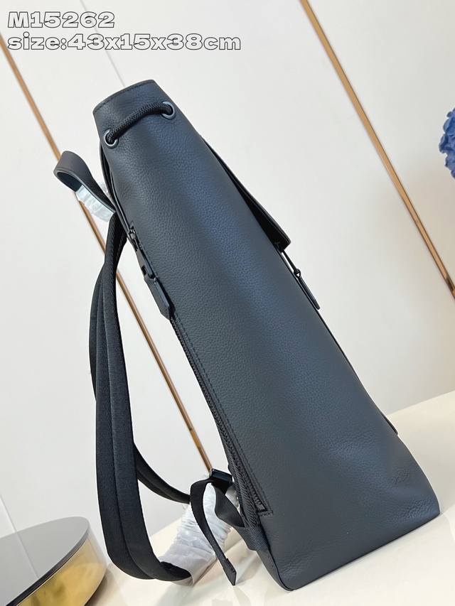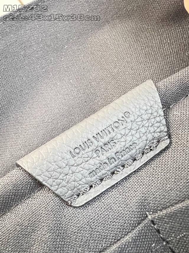 The premium original M15262 Fastline Backpack is crafted from soft, durable waxed cowhide leather, featuring a grained texture and embossed Lv logo for a modern business look. The spacious interior showcases functionality, with a padded inner pocket that easily accommodates a 16-inch laptop. Dimensions: 43 x 15 x 38 cm (H x W x D)