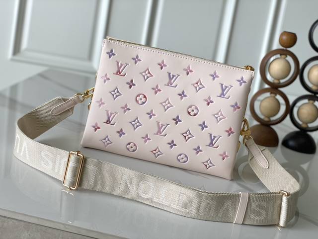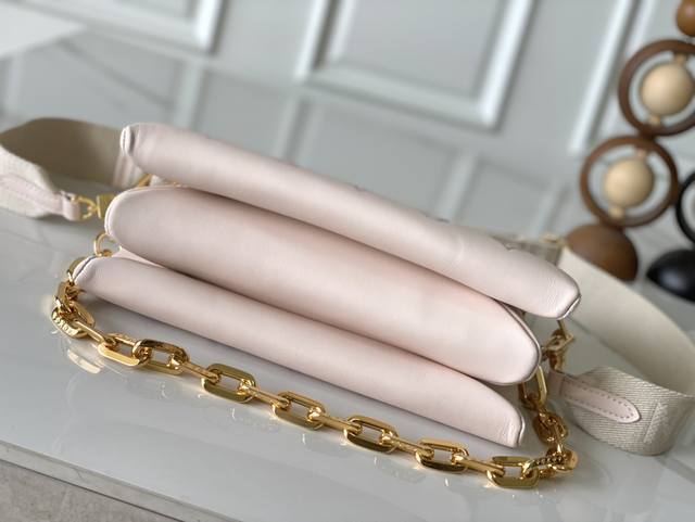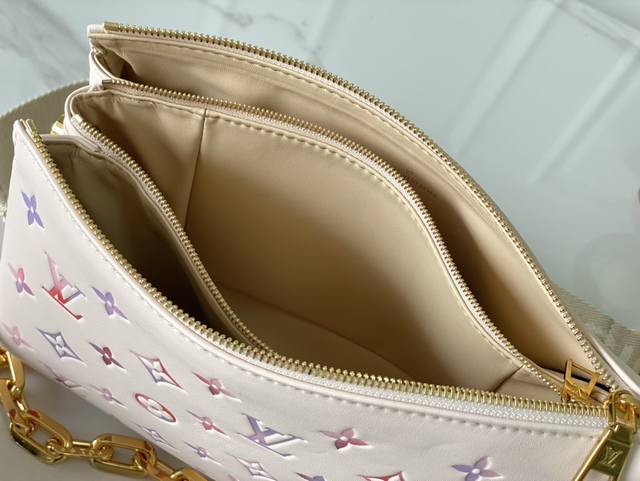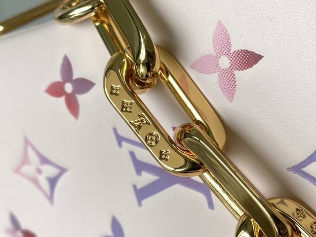 This model is M25507, a top-grain sheepskin leather. This small Coussin handbag from the Spring In The City collection features classic Monogram Empreinte leather in a subtle two-tone effect. The robust Lv chain is accented with shimmering shell details. The perfect size allows for easy storage of everyday essentials, whether carried cross-body, on the shoulder, or by hand. 26.0 x 20.0 x 12.0 cm (L x H x W)