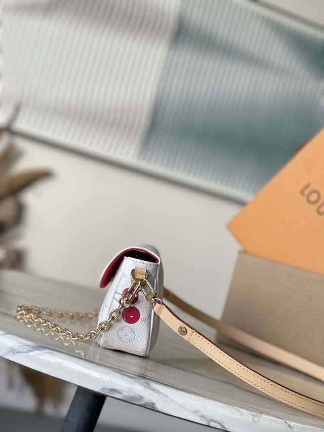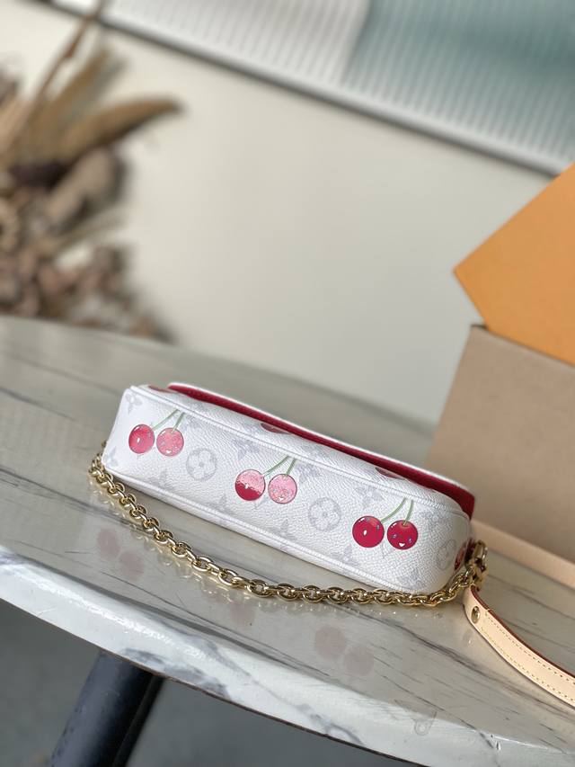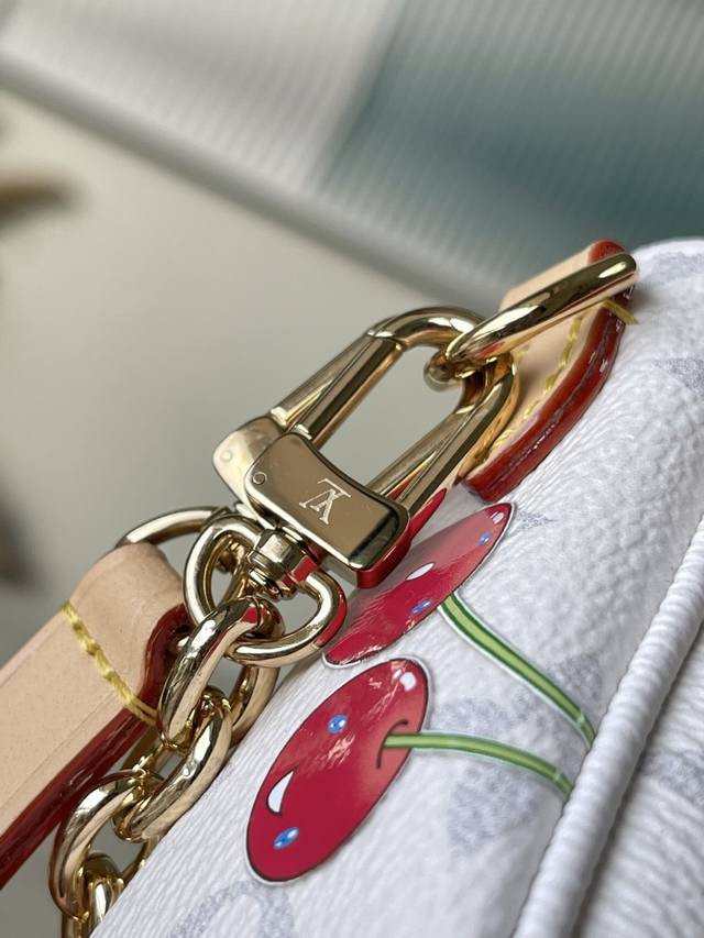 Top Original M14239 This Wallet On Chain Lvy bag continues the 2000s' narrative of individuality, joyfully joining the Louis Vuitton x Takashi Murakami retro collection. Monogram canvas cleverly accentuates the vibrant colors of the cherry pattern, unleashing the kawaii energy of the Japanese artist's vision. A leather shoulder strap and chain facilitate shoulder carry. Dimensions: 23.5