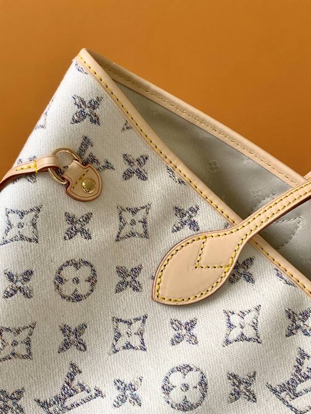 This spacious Neverfull Mm bag is part of a nautical capsule featuring a colorful collection of LV and Monogram Blossoms. Sixty-six colorful threads, in a subtle gradient, intertwine to create a jacquard pattern. Attached to the long shoulder strap is a carved mirrored charm. Inside, there's a matching detachable zippered pocket. Dimensions: 31-28-14 cm.
