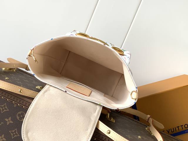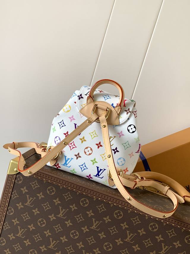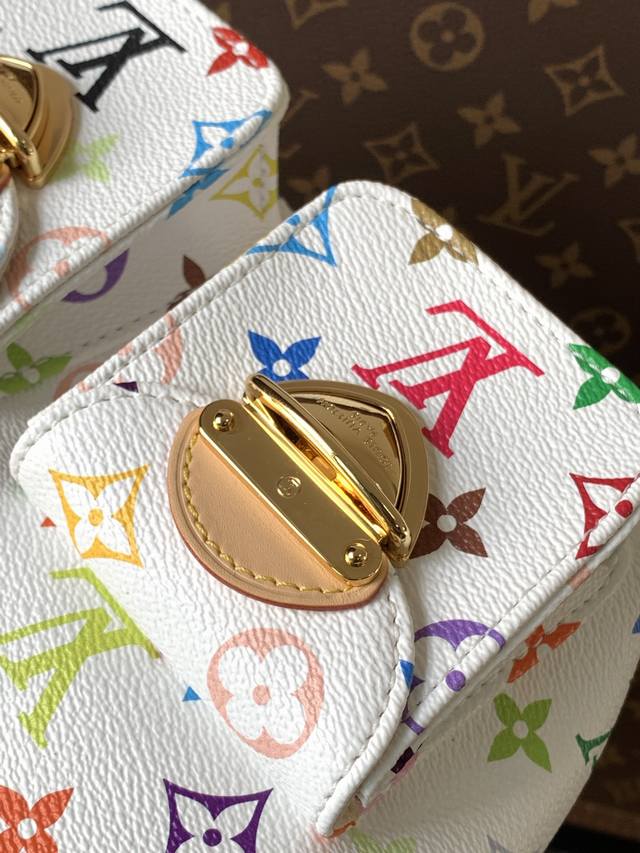 This Venice backpack is made of coated canvas and depicts the Monogram pattern in the bright colors of Japanese artist Takashi Murakami, showing the smart interest of the Louis Vuitton x Takashi Murakami re-edition series. Classic cowhide leather shapes the slender shoulder straps, and large buckles inject metallic luster into the flap and outer pockets.