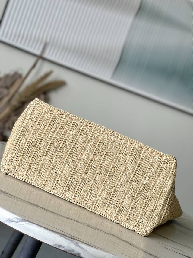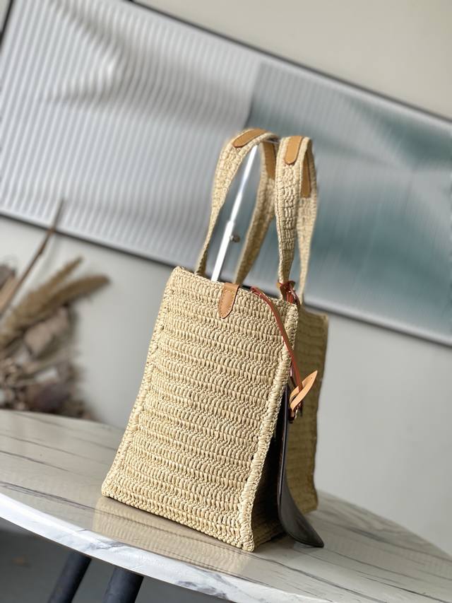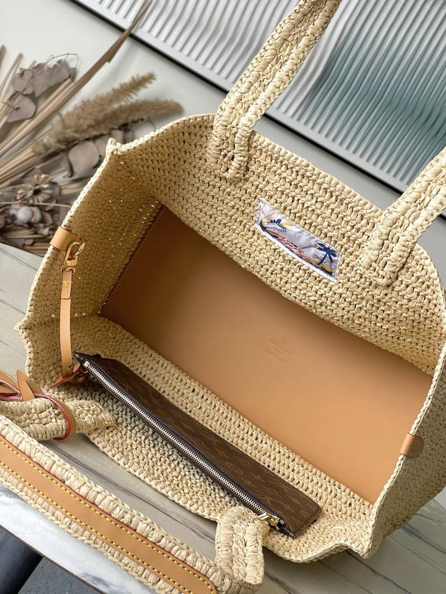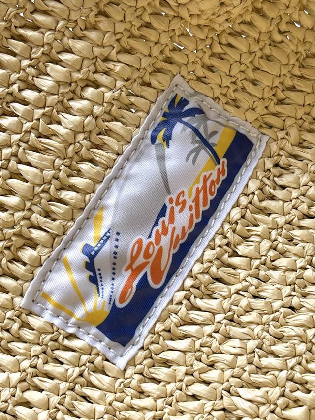 Top Original Single M14458 This Shopper Tote is crafted from soft raffia, embellished with the Louis Vuitton signature embroidery on the front. A removable distressed leather name tag adds a vintage touch, while a woven Louis Vuitton label on the inside highlights the new season's cruise theme. Dimensions: 44 x 32 x 17 cm