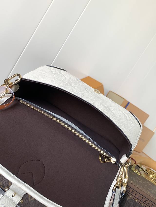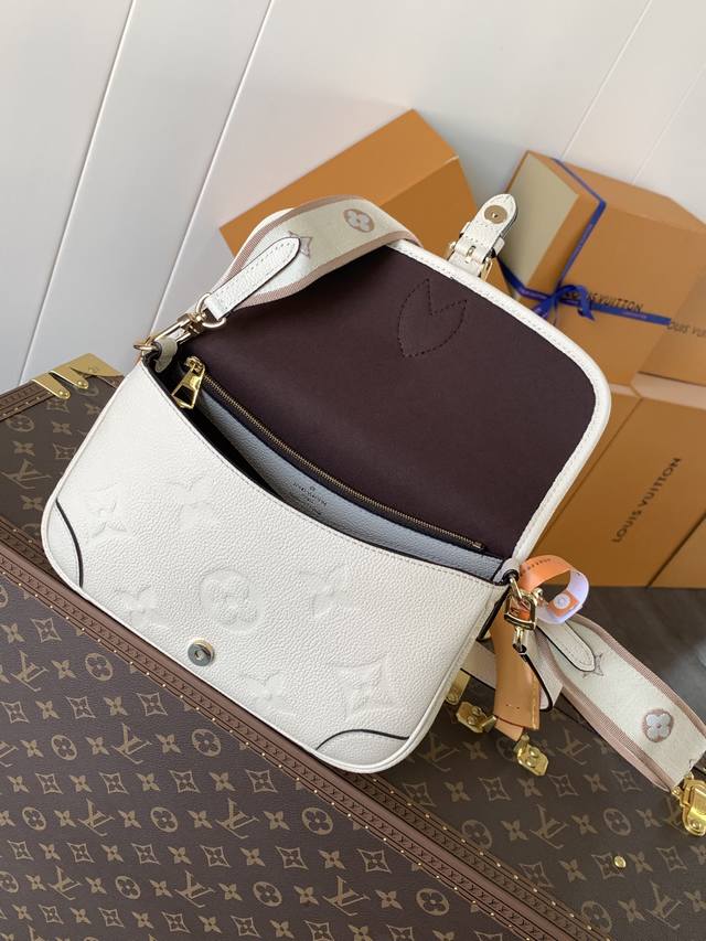 Top-Grade Authentic Single-Piece, Variable-Code Chip, Custom-Made Imported Full-Grain Leather M47161 Blue M46846 Haze Blue M46386 Black M46388 Beige M46583 Apricot Silk-Printed This Diane Handbag Is Crafted From Louis Vuitton