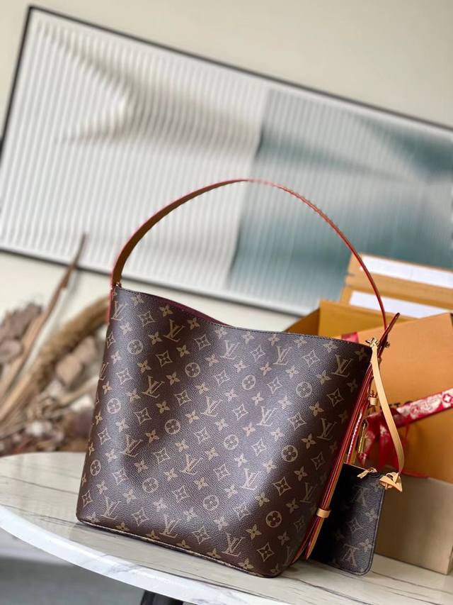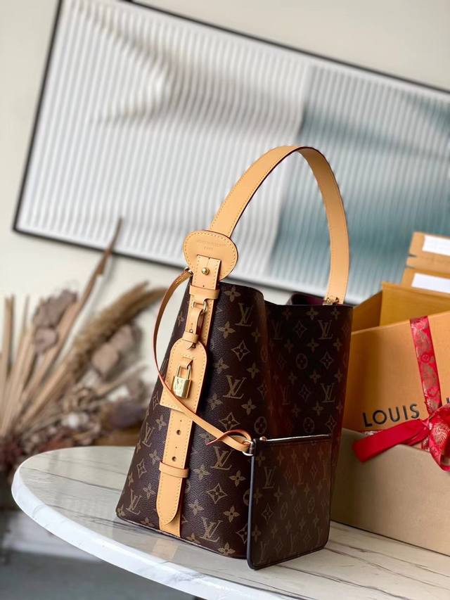 Top-grade original M12926 This large Alin bag features a bucket-shaped design in Monogram canvas, offering ample space for a laptop and other essentials. The adjustable leather shoulder strap nods to 1930s Louis Vuitton trunks. The closure allows for both storage and storage, while the shiny hardware adds a stylish touch. Dimensions: 26