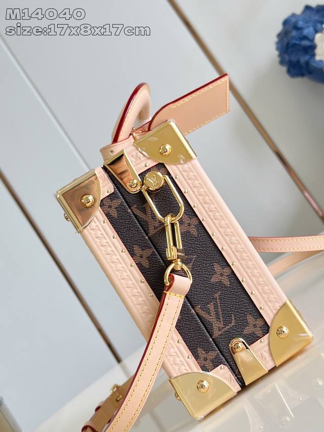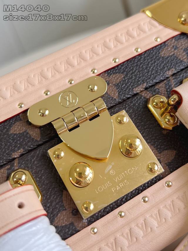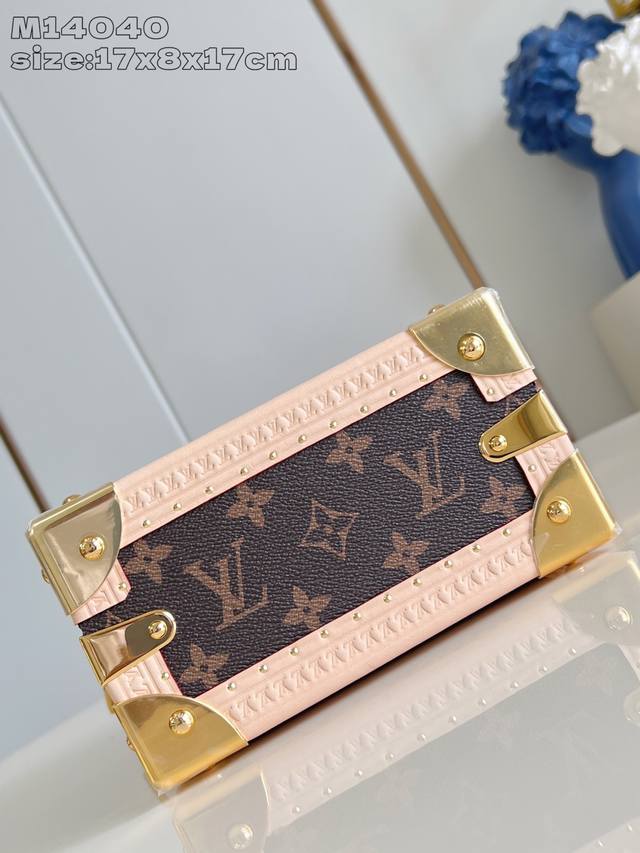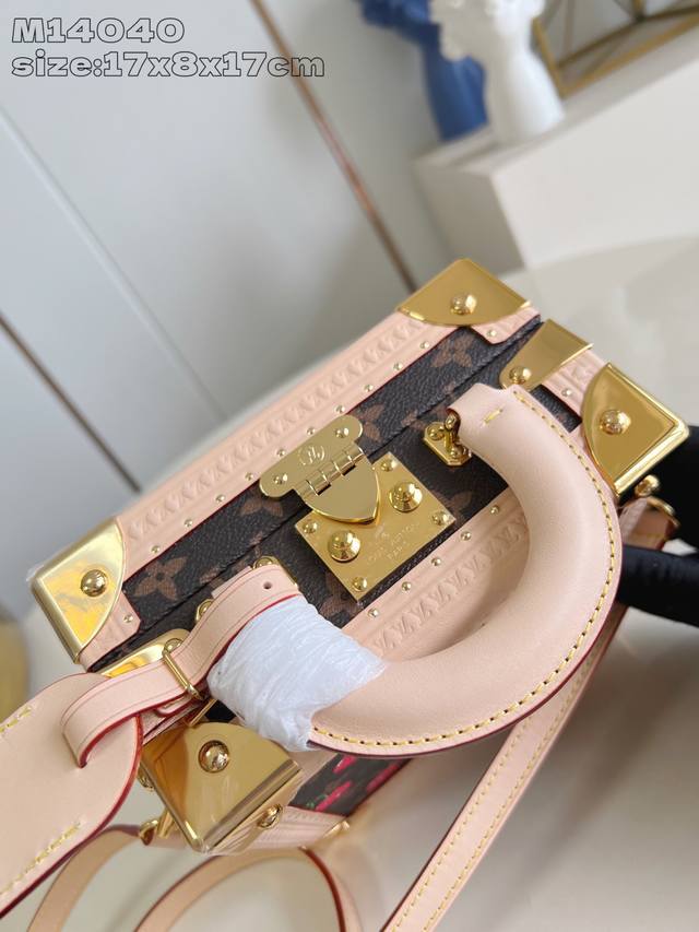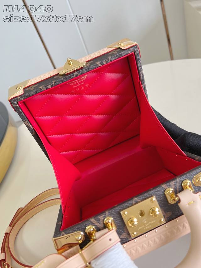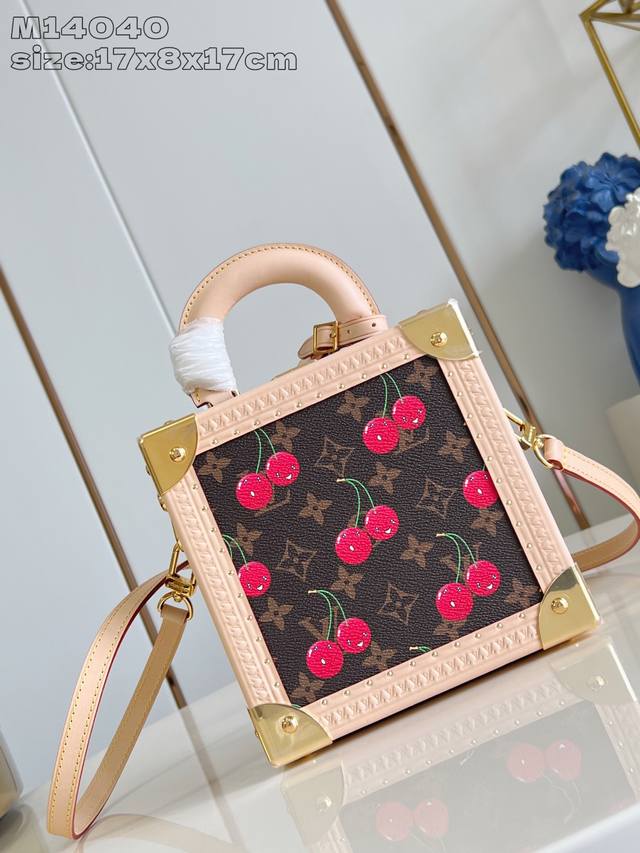 Top-grade original M14040 Cherry. This Mini Square Trunk bag, from the Louis Vuitton x Takashi Murakami retro collection, showcases a playful, miniature take on a classic heritage. Monogram coated canvas, combined with a charming cherry pattern, unleashes the season's kawaii energy. Cowhide leather trim, lustrous hardware, and studded corners complete the details. Curved handles and a detachable shoulder strap offer versatile carrying options. 17 x 8 x 17 cm (H x W x L)
