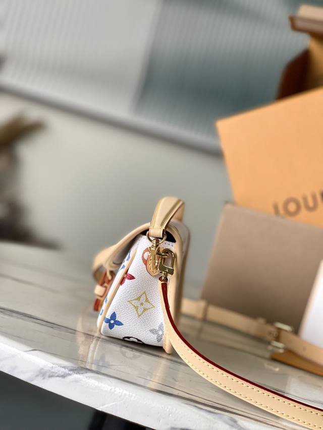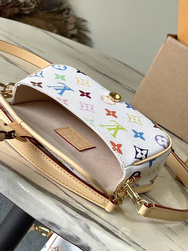 Top-grade original M14194 This Nano Diane handbag, part of the Louis Vuitton x Takashi Murakami collaboration, exudes natural charm with its vibrant Monogram pattern. Dazzling hardware and cowhide leather trim enhance its classic style. The detachable and adjustable leather shoulder strap allows for cross-body wear. The compact design accommodates a phone, short wallet, and other daily essentials. Dimensions: 19