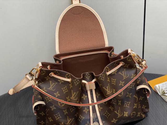 Top-grade original M26040 monogram chain bag Odyssey This Odyssee medium handbag reinterprets Louis Vuitton's classic design from a modern perspective, with a casual style that fits an active lifestyle. Its design is inspired by the brand's Excursion backpack. It is made of Monogram canvas and decorated with decorative buckles and practical drawstrings to ensure that personal belongings are securely stored. It has just the right capacity to easily store daily necessities and has multiple pockets. Its name comes from Ulysses' journey home in the ancient Greek epic Odyssey, echoing the narrative theme of the 2025 Fall/Winter fashion show. Dimensions: 24 X 18 X 36 cm