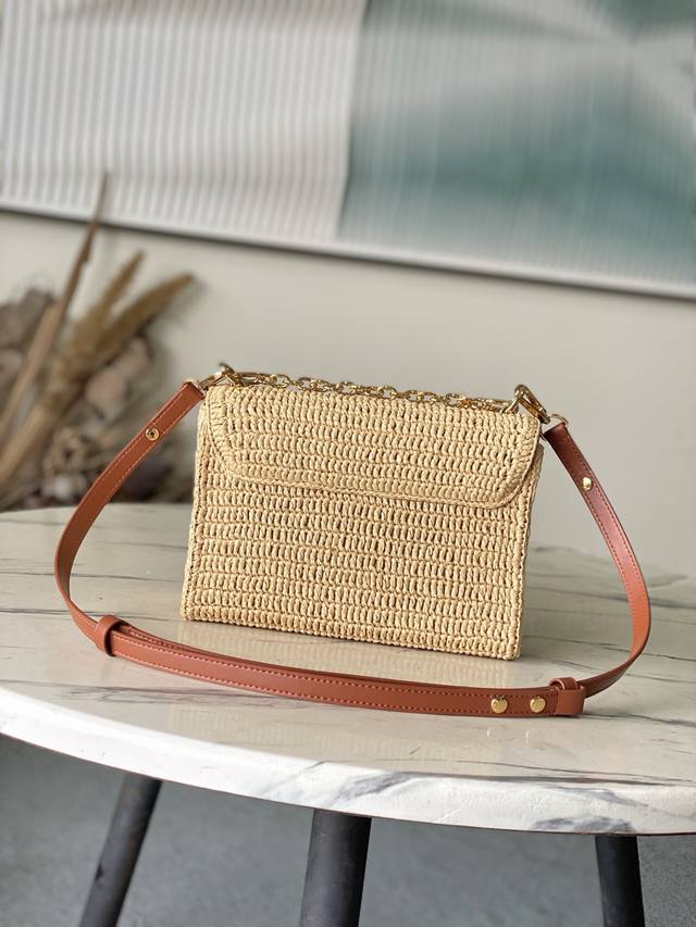 Top-grade original single M14309 This small Twistslim bag embodies the relaxed style of the French Riviera, showcasing the brand's exquisite craftsmanship with creative touches. The raffia body is accented with contrasting leather trim and the signature Lvtwist twist lock. Multiple pockets allow for organized storage, and a removable mirror adds functionality. Dimensions: 19