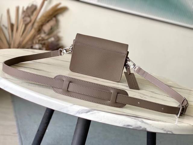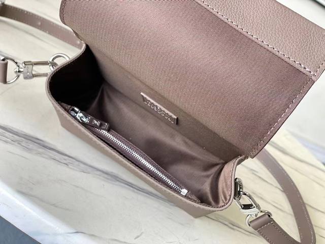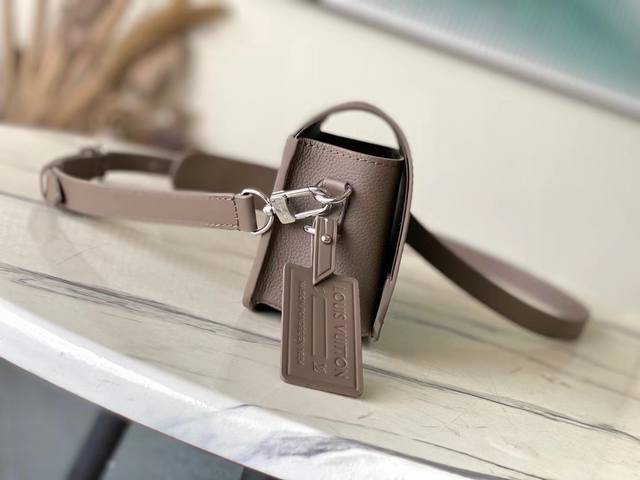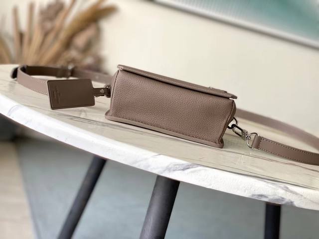 Top-grain leather, original M11484, brown. This Fastline mini handbag is crafted from grained cowhide leather with gleaming metal hardware. Its blunt-angled flap, distinctive nameplate, and metal Lv lettering evoke the iconic Lvaerogram style. Dimensions: 17.3