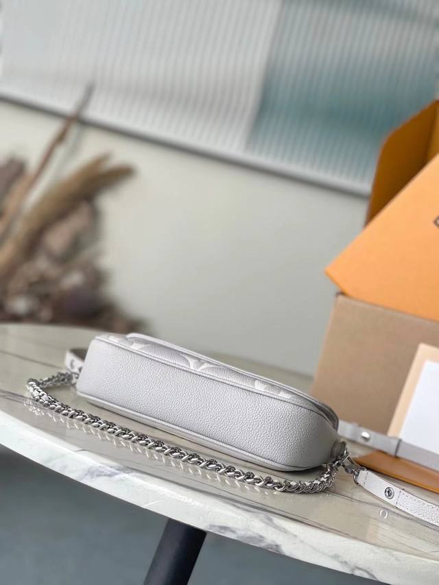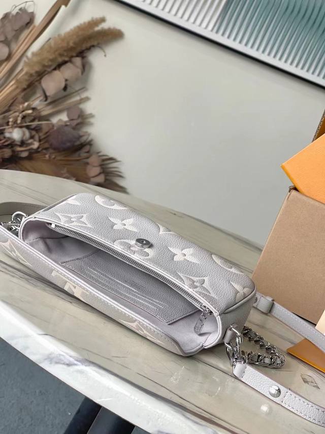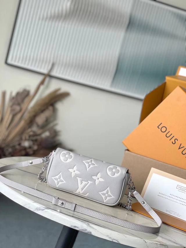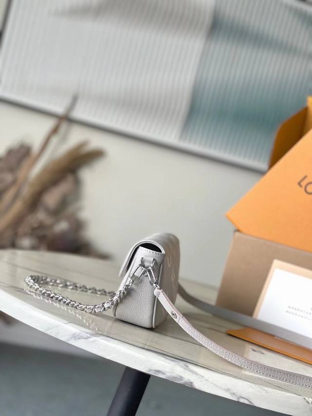 Top-grain leather, original M14225. This Wallet On Chain Lvy handbag features the brand's signature Monogram Empreinte leather, returning for the new season in a modern, elegant two-tone colorway. Lustrous hardware and a detachable chain complement each other. A card slot and zippered interior pocket make it an ideal everyday carryall. Dimensions: 23.5