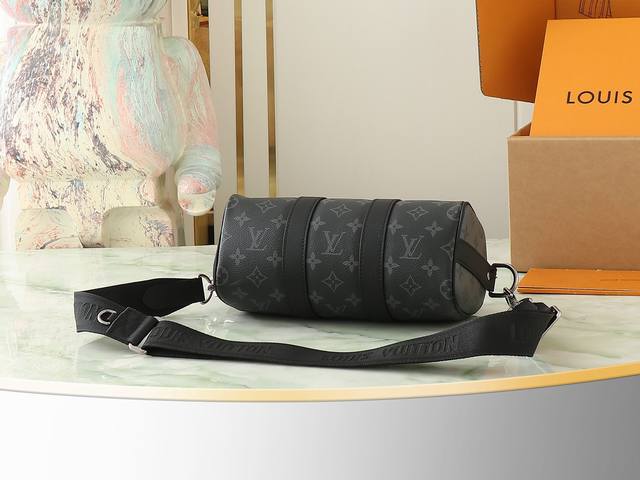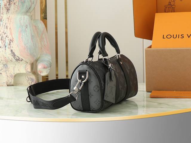 Top-quality original, original, and genuine photos of the M46271 Black Flower Chip Enhanced Edition Men's Pillow Bag Collection. This Keepall 25 handbag is crafted from Monogram Eclipse Reverse canvas, showcasing an elegant reinterpretation of Louis Vuitton's classic pattern. The reinforced straps and leather nameplate are signature elements of the Keepall collection, while a zipper closure ensures the secure carrying of personal belongings. Dimensions: 25.0 x 15.0 x 11.0 cm (Length x Height x Width)