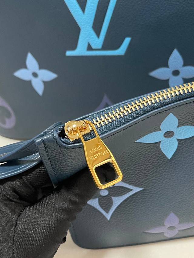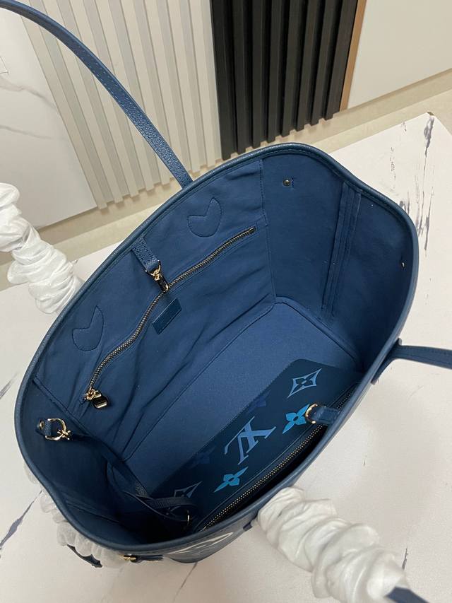 Top-quality original, original, and genuine photos of the M46514 blue M45686 full-leather shopping bag collection. This season's new Neverfull medium handbag features Monogram Empreinte leather, embellished with large Lv monogram and Monogram flowers in gradient colors. Unfasten the side straps to transform the compact bag into a casual tote. The removable Monogram Empreinte leather zippered pocket is perfect for storing valuables. Details: 31 x 28 x 14 cm.