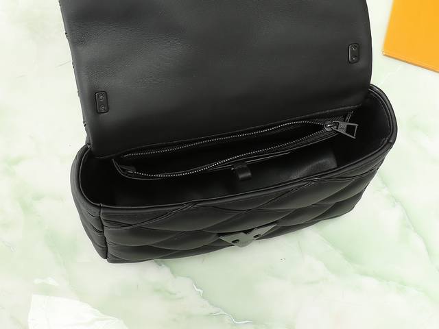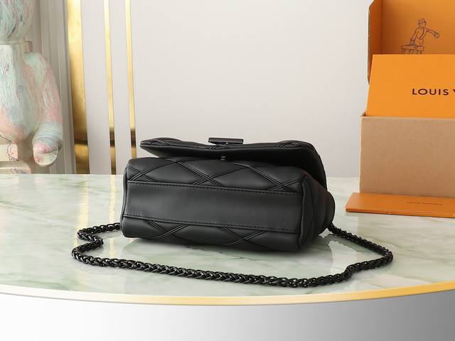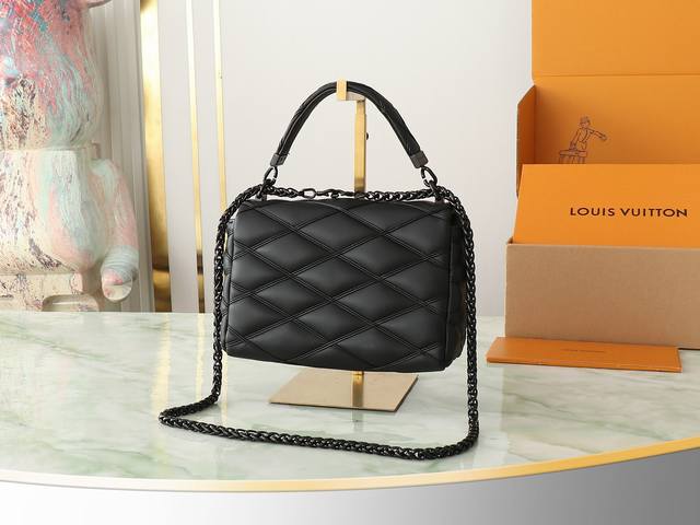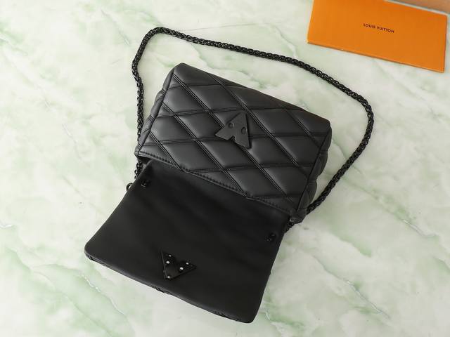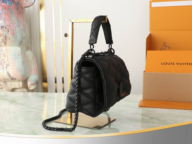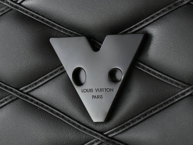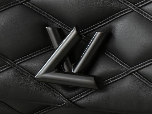 Top-quality original, original, and in-house photos. M11374 M22891. This Go-14 medium handbag from the Black Out collection features the brand's signature Malletage quilting on sheepskin leather. Matte hardware, including the LV Twist lock and sliding chain, further enhances the deep hue. The spacious interior offers convenient storage for everyday necessities, complemented by a patch pocket and mirror. Dimensions: 23.0 x 16.0 x 10.0 cm (Length x Height x Width) (