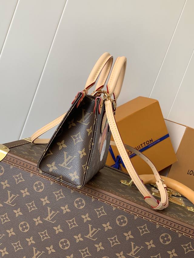 The Louis Vuitton x Takashi Murakami re-edition collection features a playful interpretation of the Onthego handbag. Monogram canvas and cowhide leather define the brand's classic style, while Murakami's playful and adorable panda characters are embodied in the front and back prints. A detachable and adjustable shoulder strap offers versatile carrying options, and a zippered interior patch pocket keeps personal belongings secure.