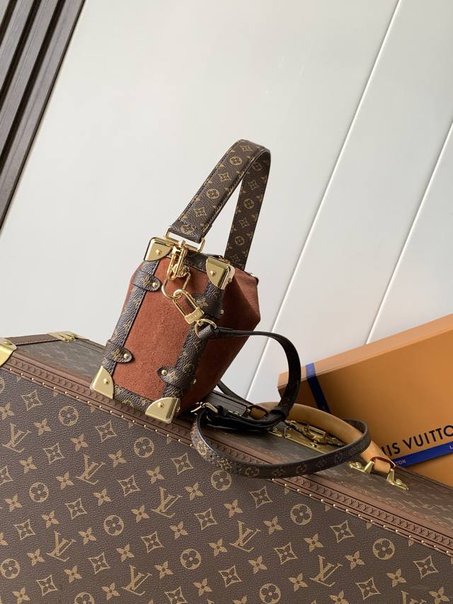 Louis Vuitton continues its trunk-making tradition in the Fall/Winter 2025 collection. This Side Trunk Medium handbag is crafted from iconic Monogram Saga leather, its vintage texture inspired by the classic trench coat worn by supermodel Freja Beha Erichsen at Nicolas Ghesqui