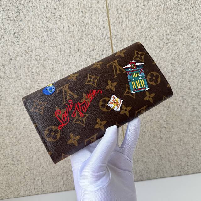 Top-tier original M15336 From the "Vivienne Winter Holiday" collection, the playful "Portouille Sara" makes its appearance. Louis Vuitton's mascot illustration and a shutter button mimicking "Vianna" add color and a fun design. Utilizing a single canvas symbolizing the estate, it is trimmed and lined with high-quality leather. Dimensions: 19 x 10.5 x 2 cm. DDD