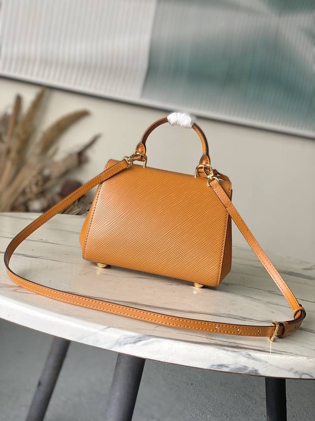 Top-tier original M25881 58931 Caramel Ddd From the Back to School series, this timeless Cluny mini bag is ideal for the office and weekends. Crafted from Epi leather, a symbol of the house, it features a smooth leather handle that matches the keybell. This structured model is adorned with gold-tone metallic finishes and a shaded LV initial. It can be carried by hand, crossbody, or over the shoulder. DDD 20X16X7.5cm DDD Length X Height X Width DDD