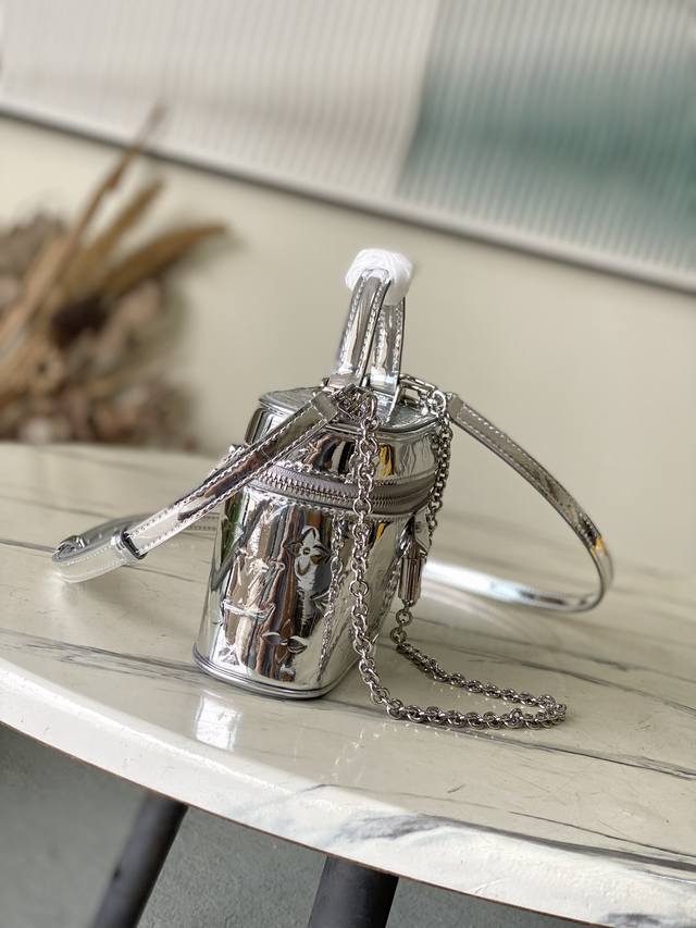 Top-tier original M26097 DDD This Vanity Chain pouch handbag is from the LV Ski collection, drawing inspiration from the brand's traditional vanity case and interpreting the spirit of travel in Monogram Miroir canvas. The LV monogram padlock, detachable shoulder strap, and chain highlight sophisticated details. Its well-proportioned design easily accommodates everyday essentials such as a small coin purse and sunglasses. DDD 11.5 X 6.5 X 19 cm DDD Height X Width X Length DDD