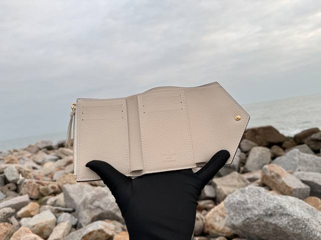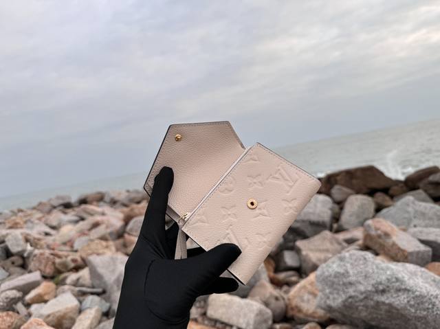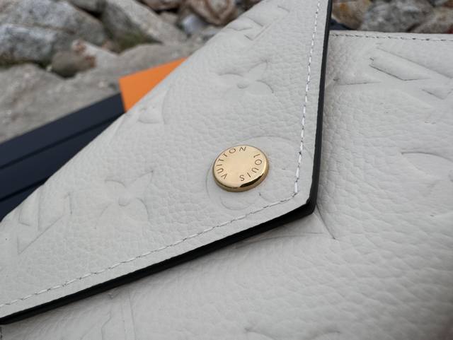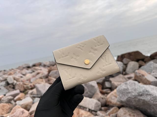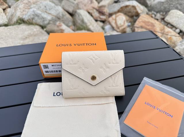 Top-tier original M82334 White Victorine wallet this season is reinterpreted with Louis Vuitton's iconic Monogram embossed pattern on supple Monogram Empreinte grained leather. This compact envelope-style wallet features multiple practical compartments, including dividers for coins and bills, and six cardholders. Dimensions: 12 x 9.5 x 1.5 cm. DDD